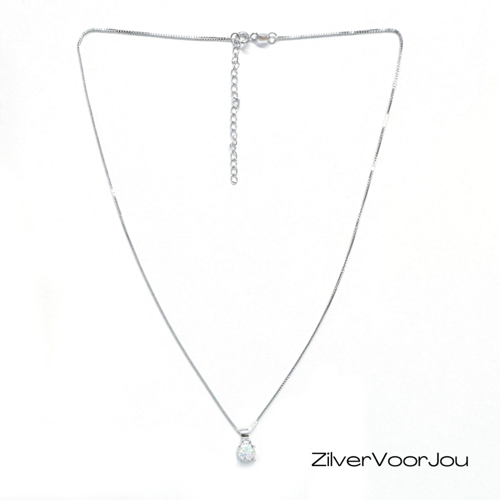 Zeer elegante echt zilveren verstelbare ketting met een 6 mm witte ronde opaal hanger. Hanger en ketting zijn gemaakt van 925 zilveren en gerhodineerd voor een prachtige afwerking.