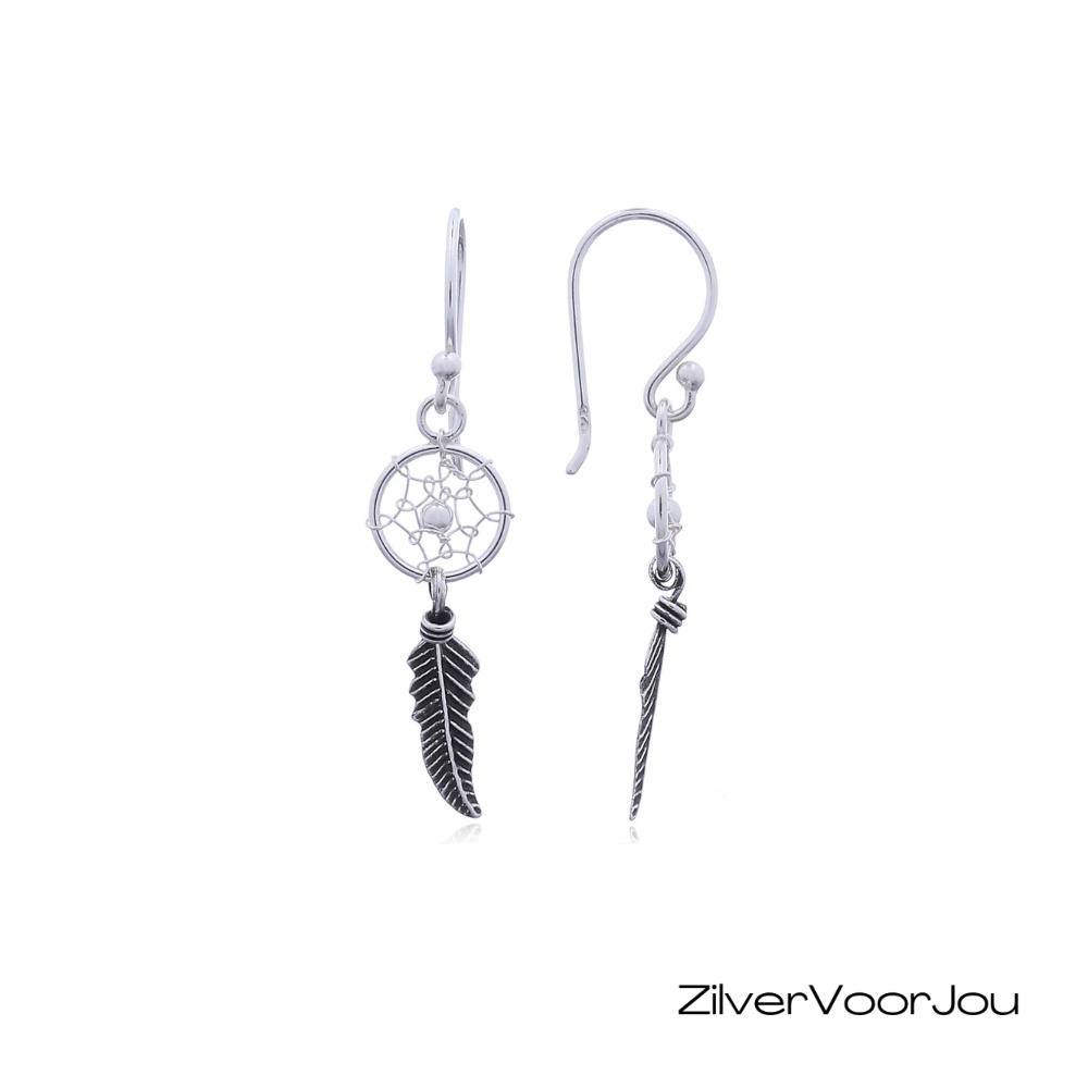 Voeg een beetje symboliek en stijl toe met deze fijne 925 zilveren dromenvanger oorhangers. Deze kleine en lichte oorbellen zijn prachtig afgewerkt met een geoxideerde look, waardoor het web en de veertjes extra tot hun recht komen. Dankzij het kleine formaat zijn deze oorbellen ook perfect geschikt voor kinderen of volwassenen die houden van subtiele sieraden.