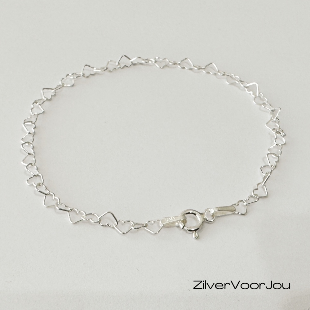 Een fijn armbandje met open hartjes, gemaakt van 925 sterling zilver. Licht en elegant, perfect om elke dag te dragen. Allemaal kleine hartjes die samen een speels én stijlvol geheel vormen. Perfect om je outfit een romantische touch te geven!