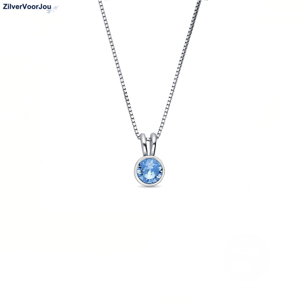 Deze zilveren ketting met lichtsaffier blauwe kristal straalt elegantie en frisheid uit. De lichtblauwe tint vangt het licht prachtig op en geeft iedere outfit een verfijnde uitstraling.