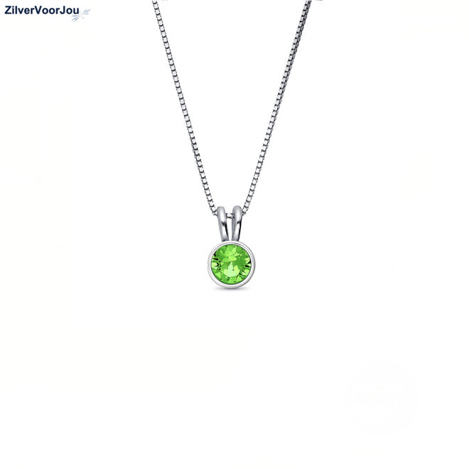 Deze zilveren ketting met peridot lichtgroen kristal straalt frisheid en elegantie uit. De zachte groene kleur doet denken aan de tint van peridot en geeft een natuurlijke en verfijnde uitstraling.