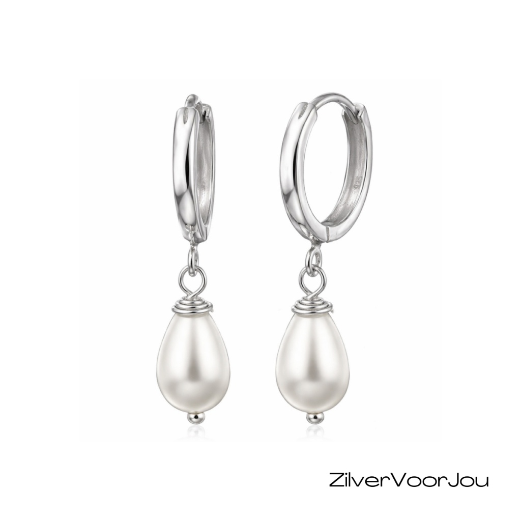 De oorringen zijn gemaakt van hoogglans 925 zilver en sluiten met een handige kliksluiting. De pareltjes zijn kleine zoetwaterparels van circa 7 x 6 mm. De totale lengte van de oorbel met parel is 26 mm.