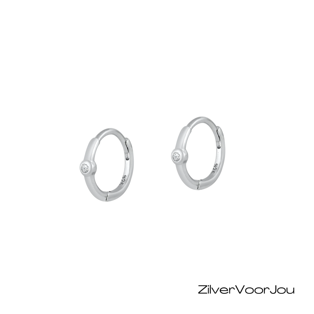 Deze 925 zilveren oorringen zijn een prachtige combinatie van eenvoud en elegantie. De kleine ring van 12 mm wordt geaccentueerd door een heldere witte zirkonia steen.