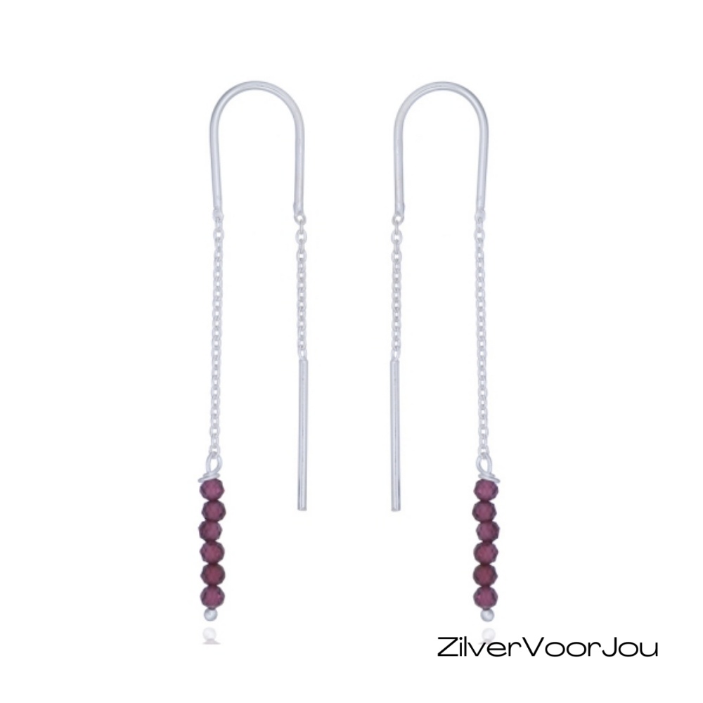 Met deze ear threaders ben je helemaal hip. De fantastische vorm én de mooie rode gefacetteerde granaat edelsteentjes maken deze doortrek oorbellen tot een echte sieraden musthave voor jou!