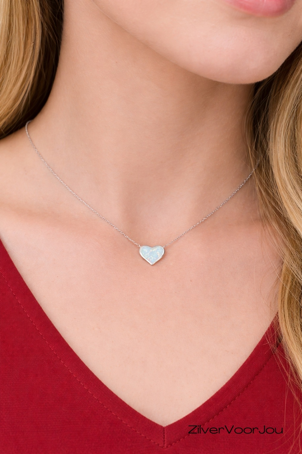 Prachtig echt zilveren ketting met een hart. Het hartje is ingelegd met witte opaal. Schitterend kettinkje om cadeau te doen.