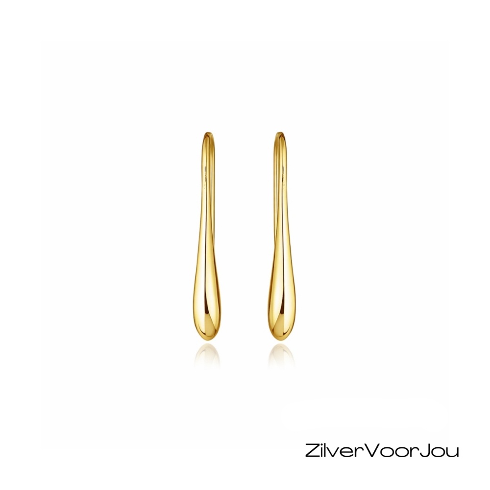 Prachtig gebogen gold plated druppel oorbelletjes. De druppels zijn vastgemaakt aan een mooie grote haak.