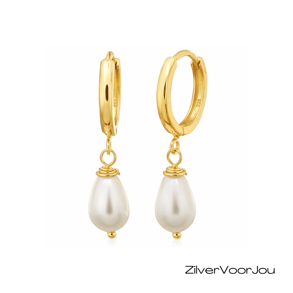 Voeg een beetje elegantie toe met deze prachtige oorringen. De oorbellen zijn gemaakt van 925 zilver en afgewerkt met een gold plated laagje voor een mooie, warme en luxe uitstraling. De druppelvormige parel zorgt voor een klassieke look – ideaal voor zowel dagelijks gebruik als speciale gelegenheden.