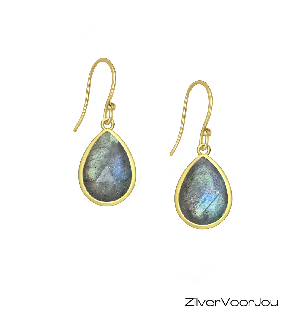 De labradoriet steen staat bekend om zijn unieke blauwe glans die met het licht meebeweegt. De druppelvormige stenen zijn geplaatst in een bezel setting en geven de oorbellen een natuurlijke en elegante uitstraling. Dankzij de haaksluiting zijn ze comfortabel om te dragen.