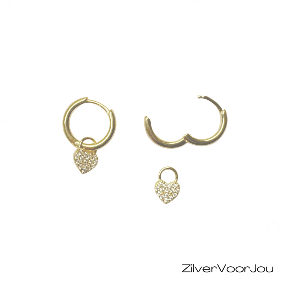 Deze gold plated 925 zilveren huggie oorringen hebben een subtiel hartje met kleine, gezette cubic zirkonia steentjes die zorgen voor een mooie bling.