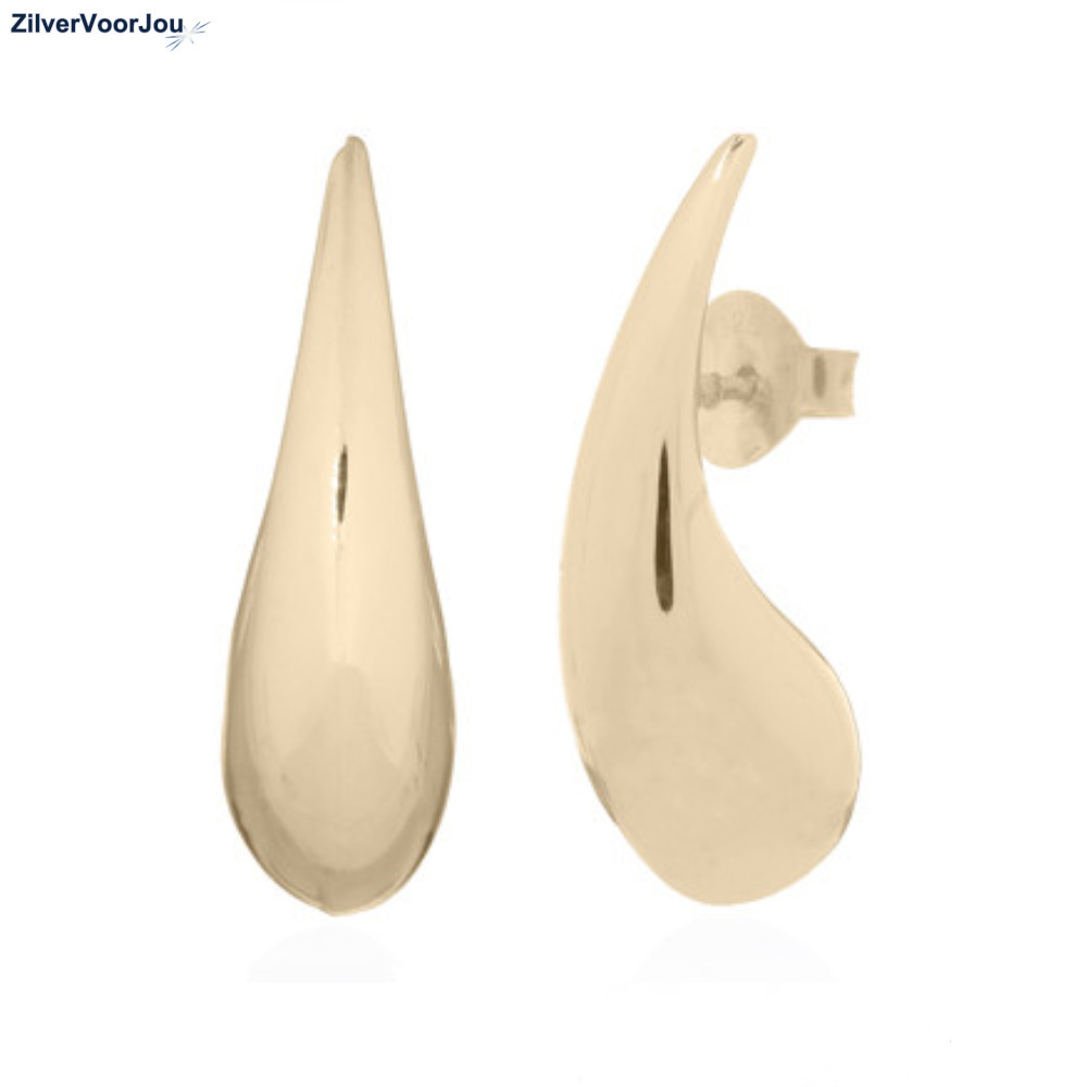 Elegante gold plated teardrop oorbellen. Stijlvol, druppelvormig, perfecte mix van luxe en elegantie. Gemaakt van 925 zilver en verguld.