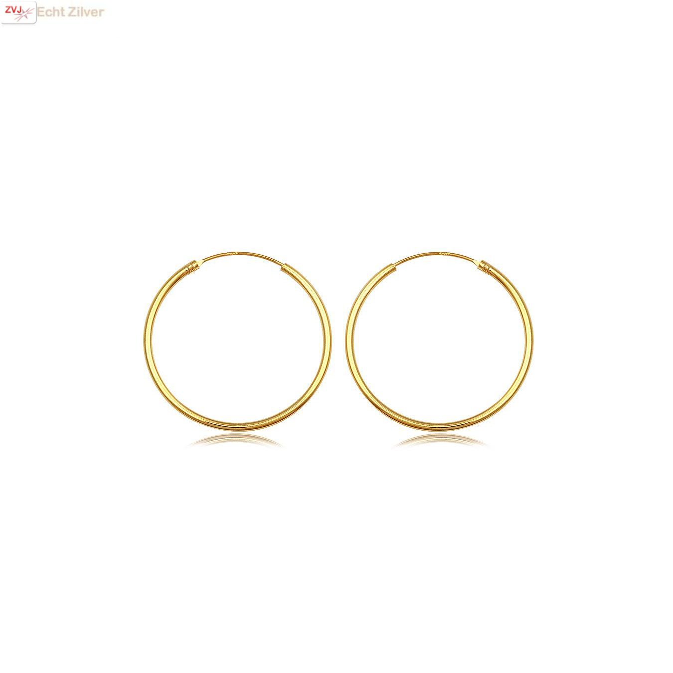 Echt 925 zilveren vergulde creolen, oorringen met een ronde buis.