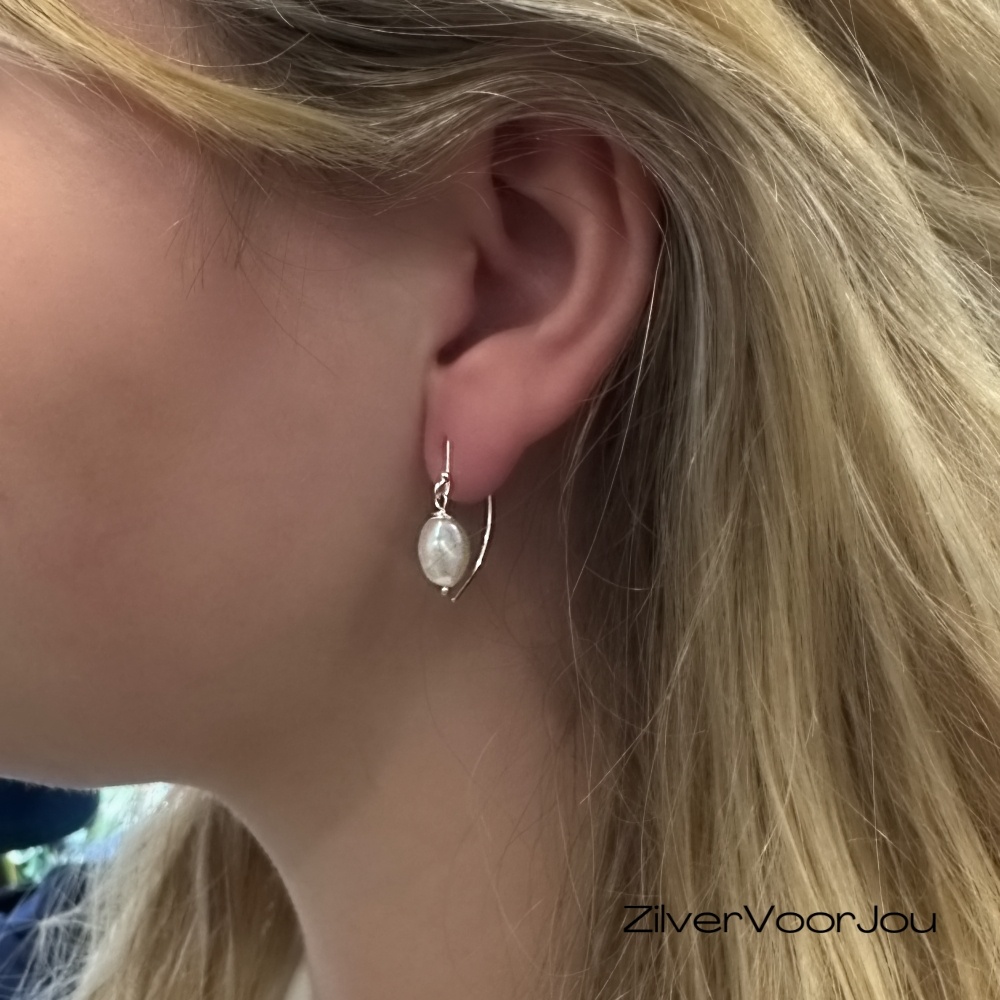 Deze oorbellen hebben een moderne, speelse uitstraling die meteen opvalt door hun unieke vorm. De zilveren haak loopt in een vloeiende beweging naar beneden, waar een zachte, natuurlijke zoetwaterparel het ontwerp compleet maakt. Het contrast tussen het strakke zilver en de organische parel geeft deze oorbellen een eigentijdse maar toch tijdloze look. Ze zijn licht, makkelijk te dragen en perfect voor iedereen die houdt van sieraden die nét even anders zijn.