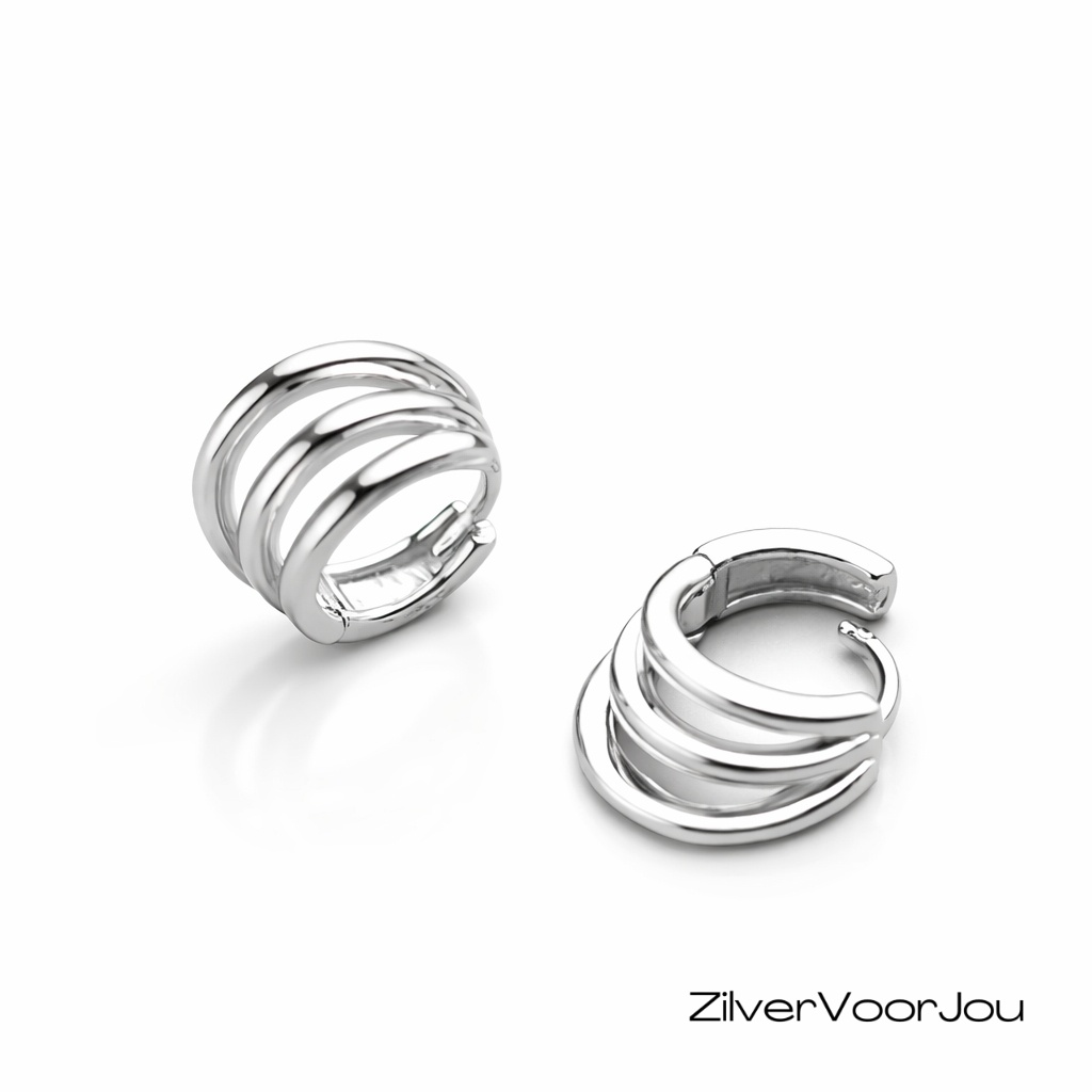 925 zilveren huggie oorringen met 3 lijnen. Het lijkt of je 3 kleine oorringen in hebt die in maat kleiner worden. Prachtige kwaliteit hoops met die makkelijke klik sluiting. Geen gepriegel meer om ze in te krijgen. Gemaakt van 925 zilver.