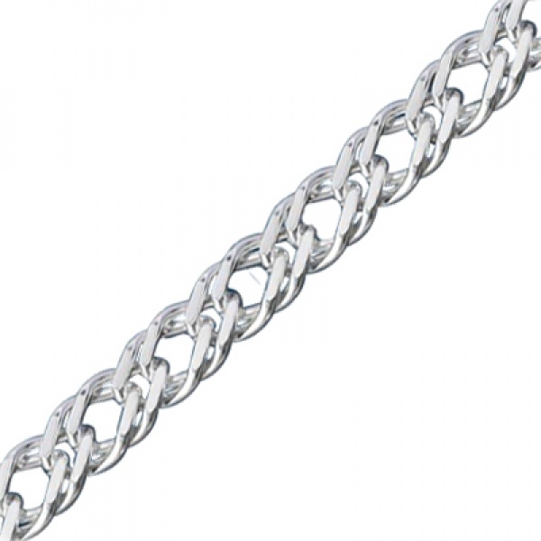 Dubbele gourmet of rombo schakelketting. Schitterende brede dames of zeer korte heren ketting. De ketting heeft een lengte van 40 cm. De schakel is 6,7 mm breed en 2.6 mm dik. Gemaakt van 925 zilver en nikkel vrij. De ketting heeft een gewicht van 23 gram