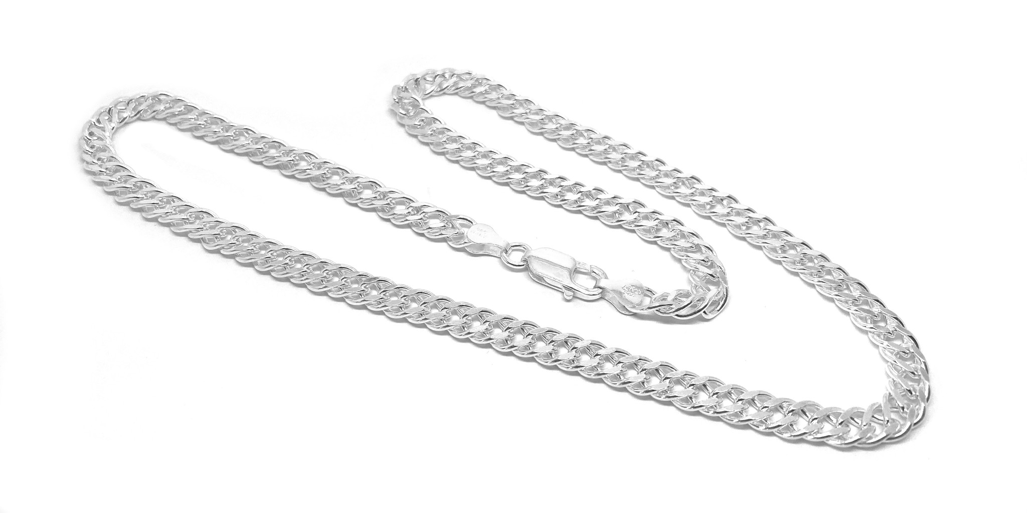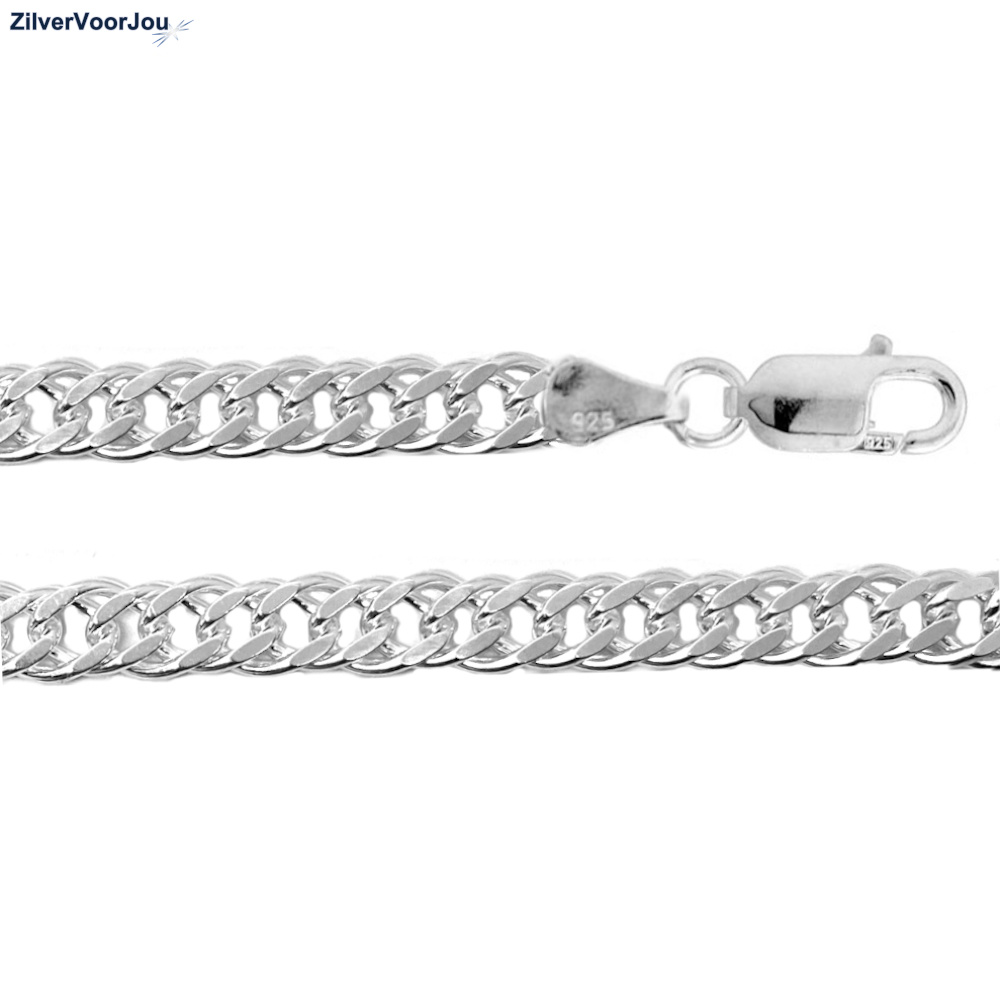 Dubbele gourmet of rombo schakelketting . Schitterende brede heren ketting. De ketting heeft een lengte van 50 cm. De schakel is 6,7 mm breed en 2.6 mm dik. Gemaakt van 925 zilver en nikkel vrij. De ketting heeft een gewicht van 29 gram