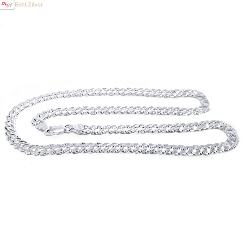Dubbele gourmet of rombo schakelketting . Schitterende heren of dames ketting. De ketting heeft een lengte van 55 cm. De schakel is 5.6 mm breed en 2.1 mm dik. Gemaakt van 925 zilver en nikkel vrij