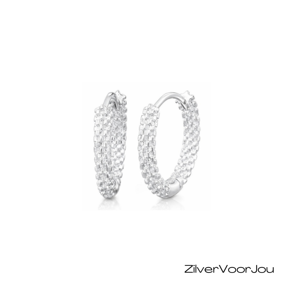 Schitterende echt zilveren carved huggie hoops. Mooie 14 mm oorringen met een prachtige bling. De hoops hebben een 2 mm dikke bewerkte buis.