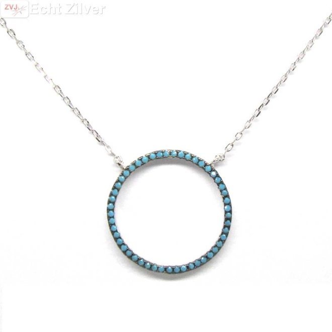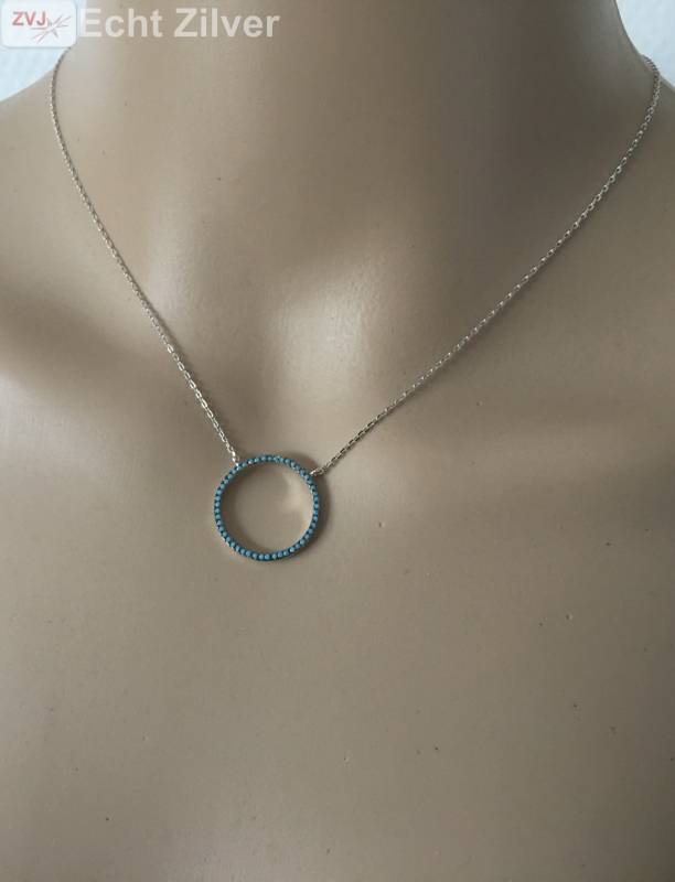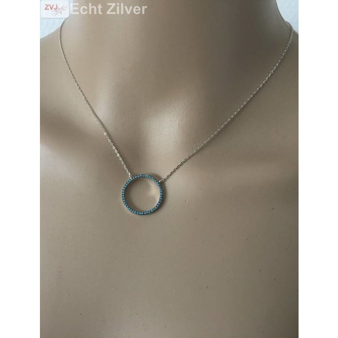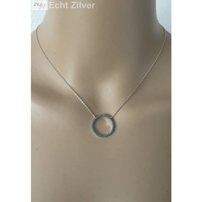 Trendy colllier. Echt zilveren collier met cirkel in zwart rhodium ingelegd met zirkonia