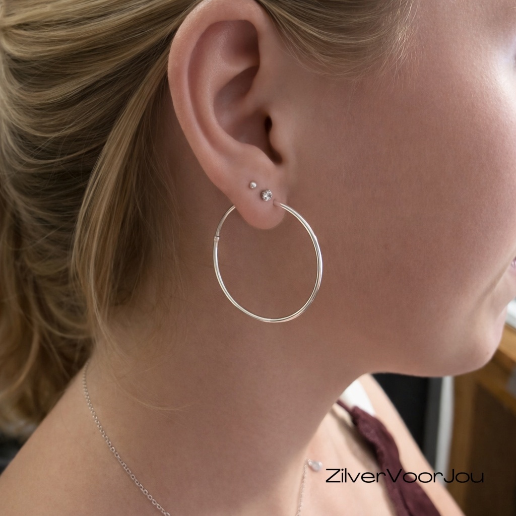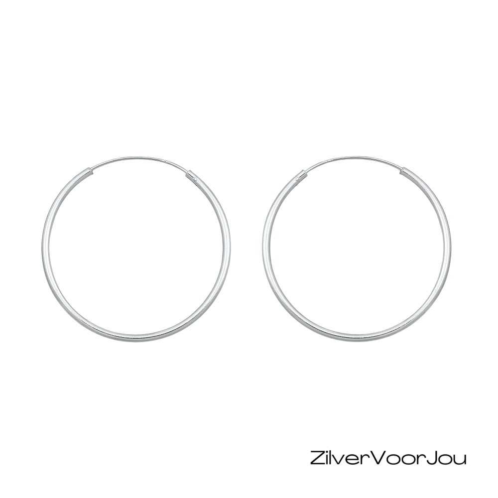 Echt zilveren creolen oorringen met een diameter van 35 mm een ronde buis van 1.5 mm breed.