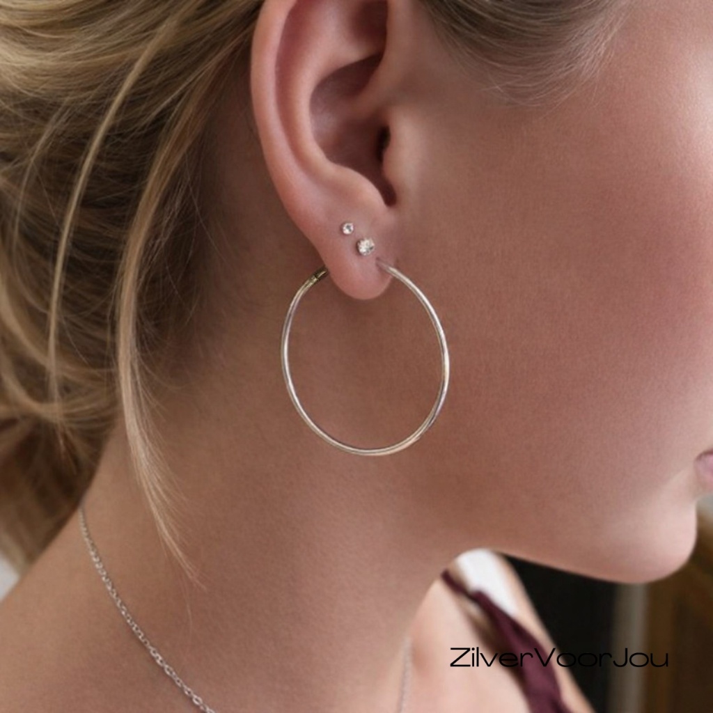 Echt zilveren creolen oorringen met een diameter van 40 mm een ronde buis van 1.5 mm breed.