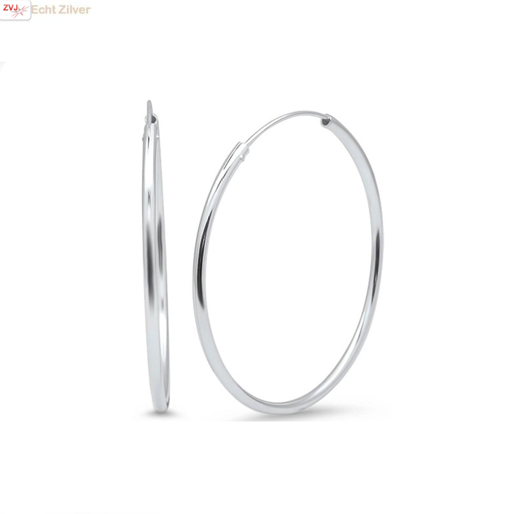 Echt zilveren creolen oorringen van 45 mm met een ronde buis van 3 mm breed.