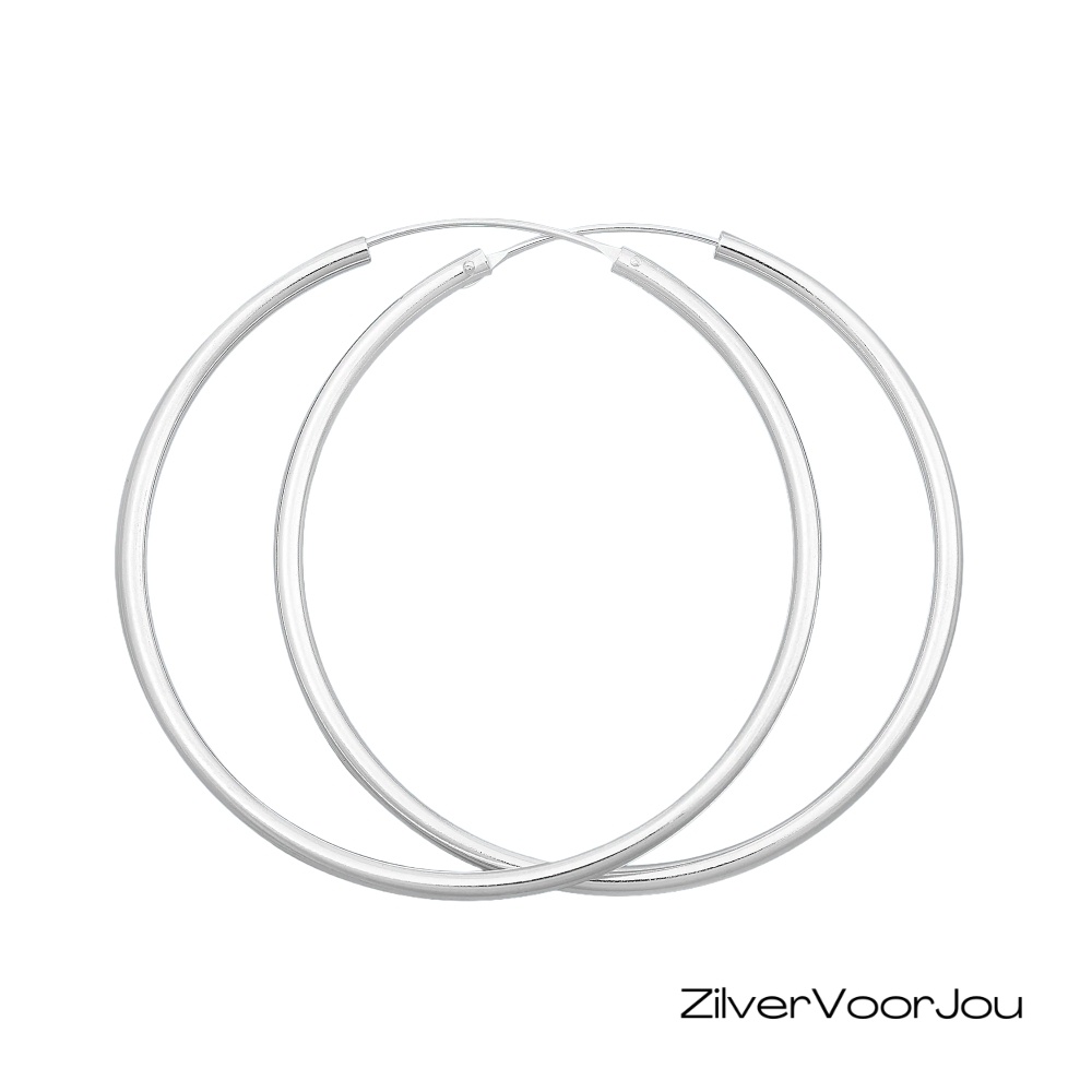 Echt zilveren grote creolen oorringen Ø 6 cm en met een ronde buis van 2.5 mm breed.