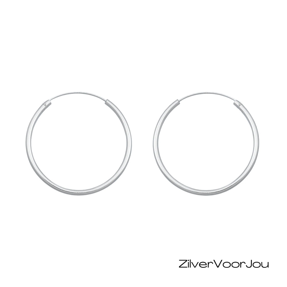 Echt zilveren creolen, oorringen met een ronde buis.