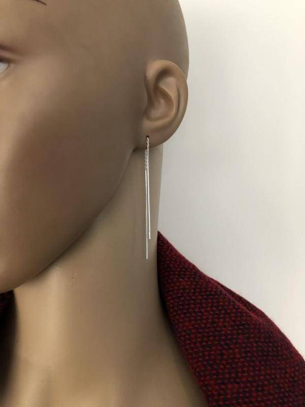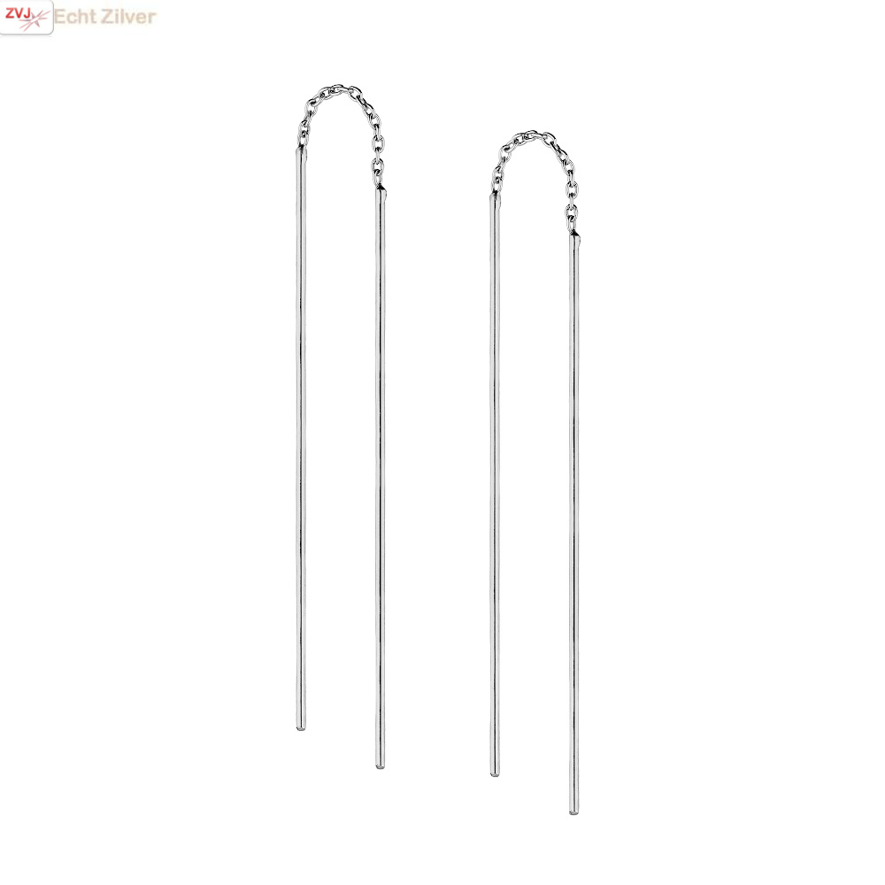 Echt zilveren hippe en tijdloze strakke simpele staaf doorhaaloorbellen of threaders.