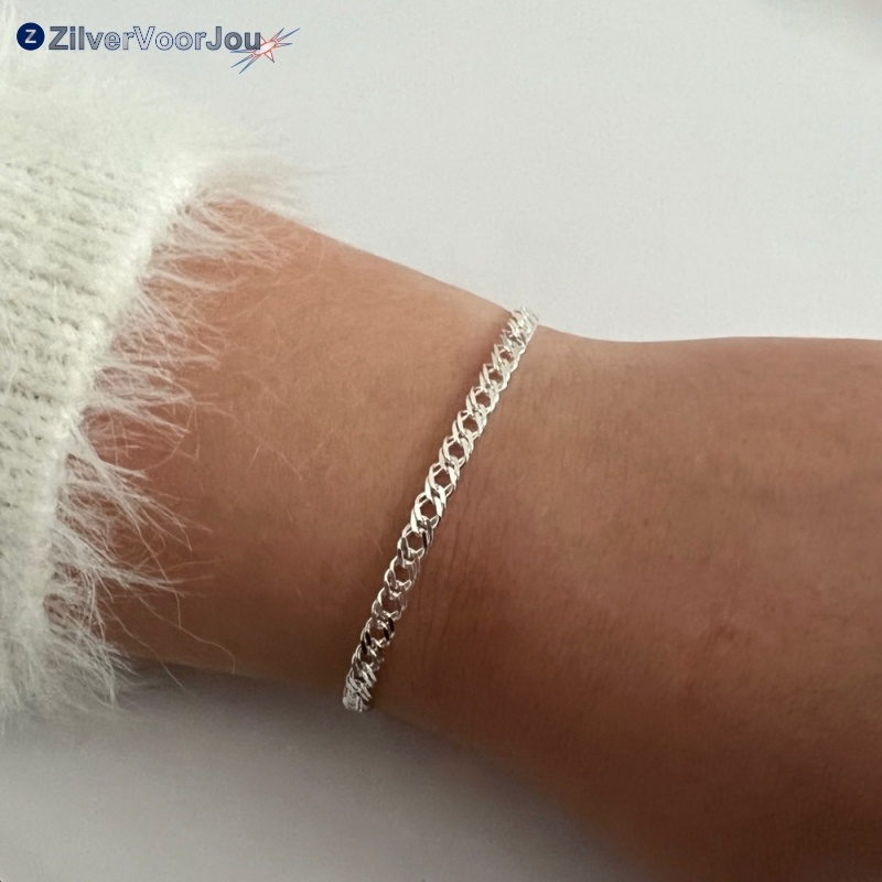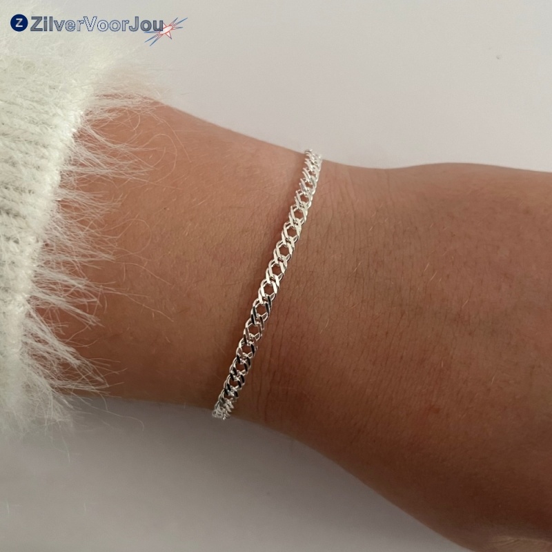 Erg leuk echt zilveren rombo of dubbele gourmet schakel armband. Het armbandje heeft een lengte van 18 cm, is 3.7 mm breed en 1.3 mm dik.