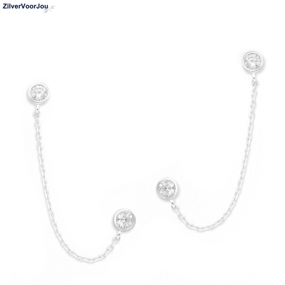 Deze studs zijn alleen geschikt als je minimaal 2 oorgaatjes hebt in 1 oor. Aan beide kanten van de ketting zit een stud voor een prachtige bling.