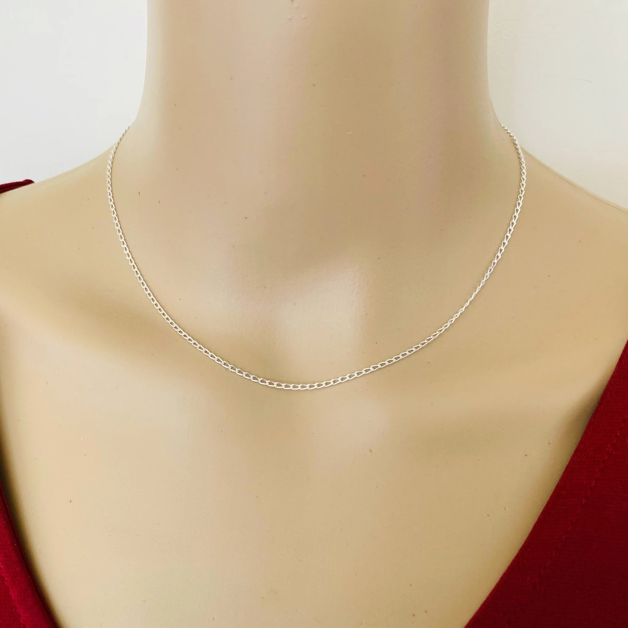 Mooie echt zilveren fijne lange gourmet schakel lengteketting. De ketting heeft een lengte van 45 cm en is 1.5 mm breed. Dit is een platte ketting en mooi om zo te dragen of in combinatie met een kleine hanger of bedel