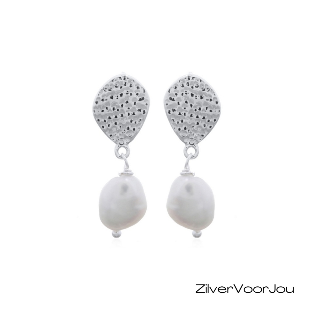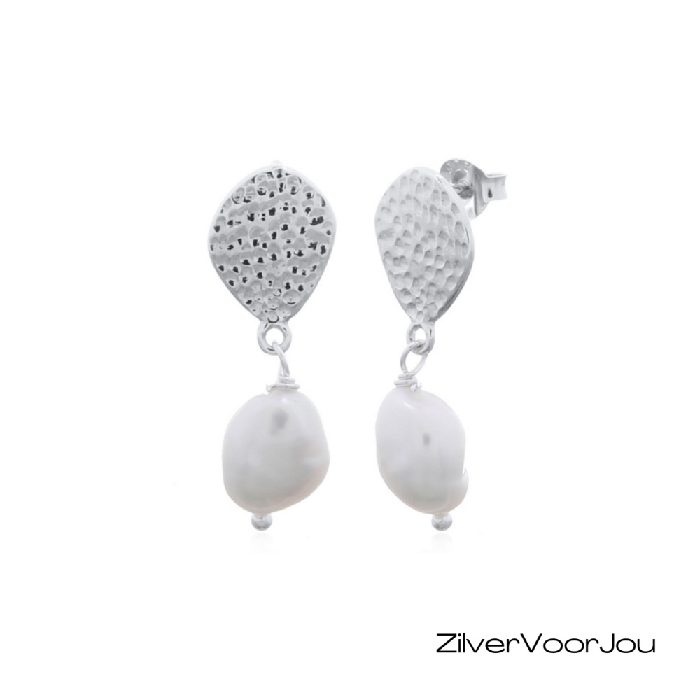 Deze oorbellen hebben een stijlvolle combinatie van modern en organisch design. De gehamerde zilveren oorstekers met daaronder een natuurlijke zoetwaterparel die elke oorbel een unieke uitstraling geeft. Het resultaat is een elegant paar oorbellen dat nét dat beetje extra karakter heeft, modern en toch heerlijk tijdloos.