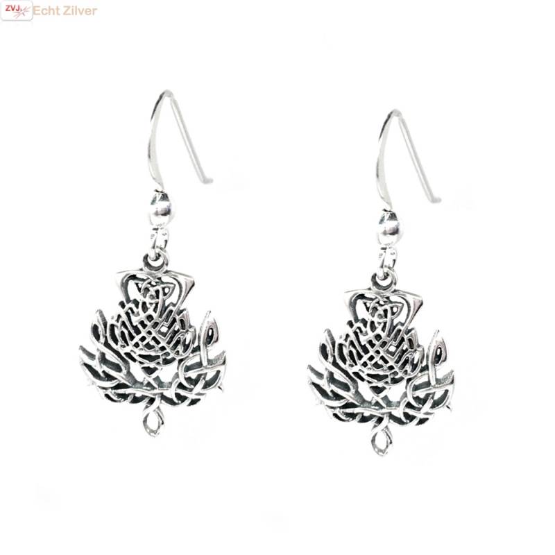Echt zilveren oorhanger met keltische distel bloem of thistle flower hangers.