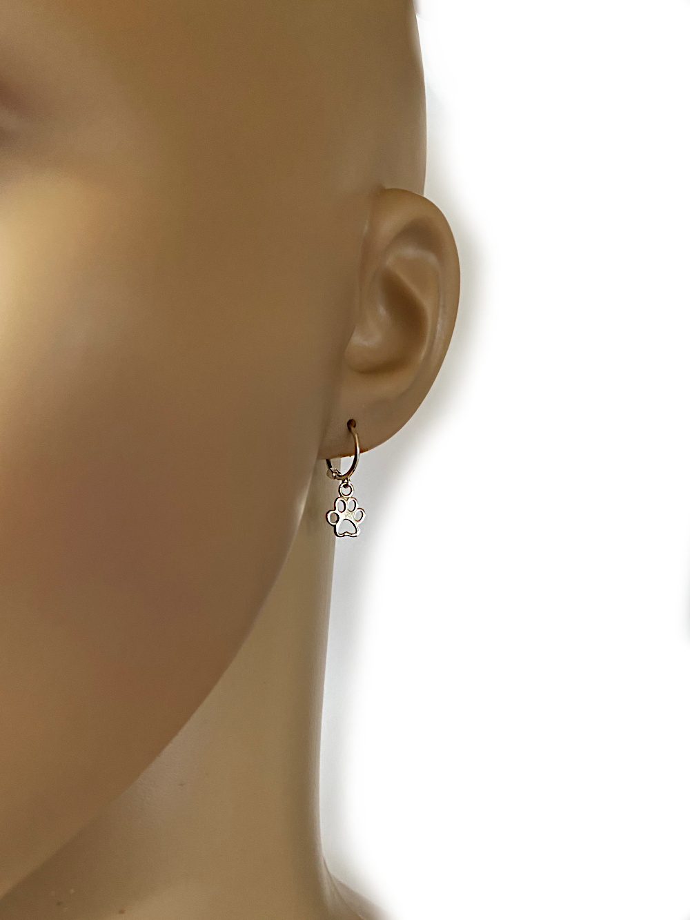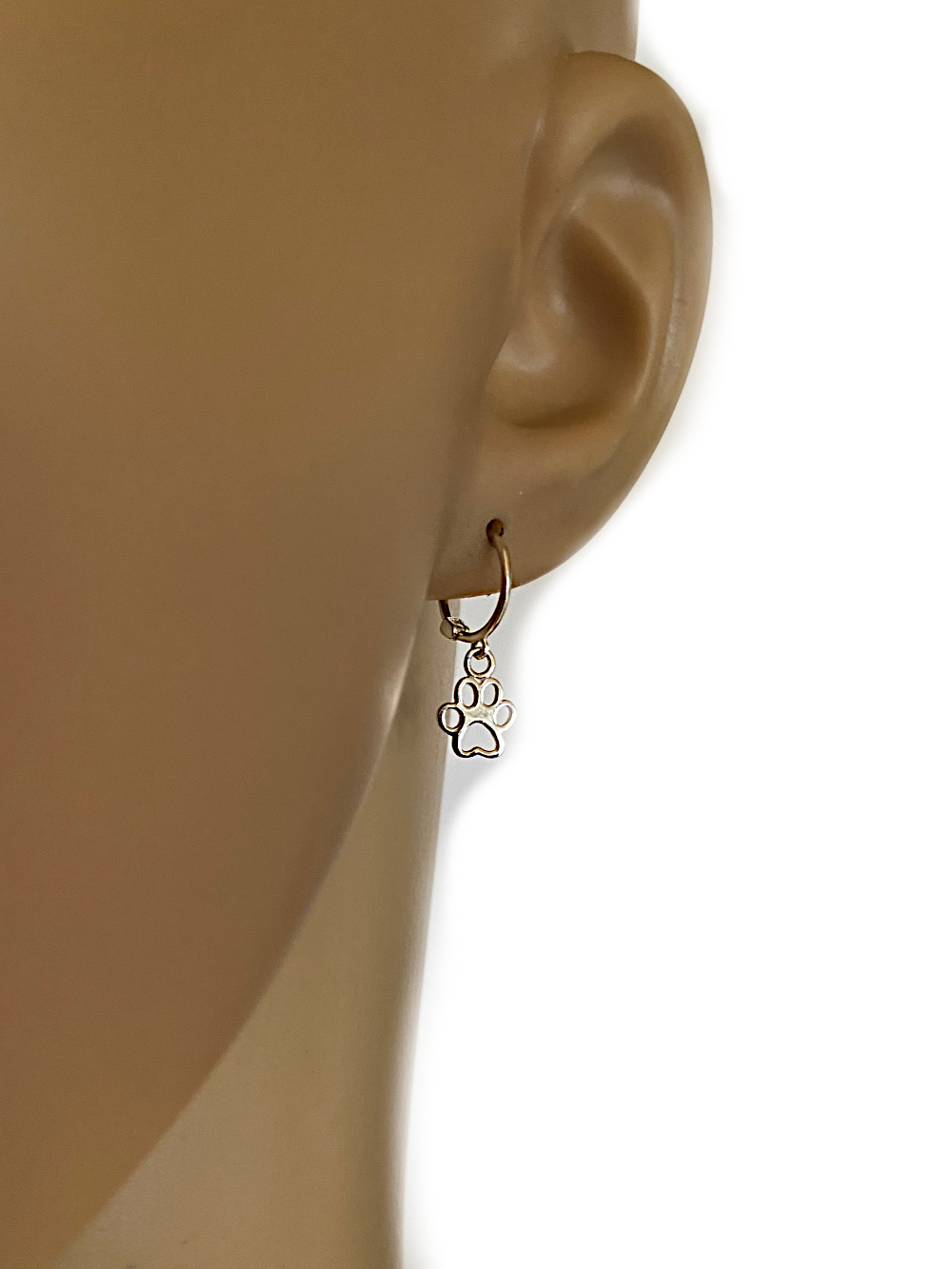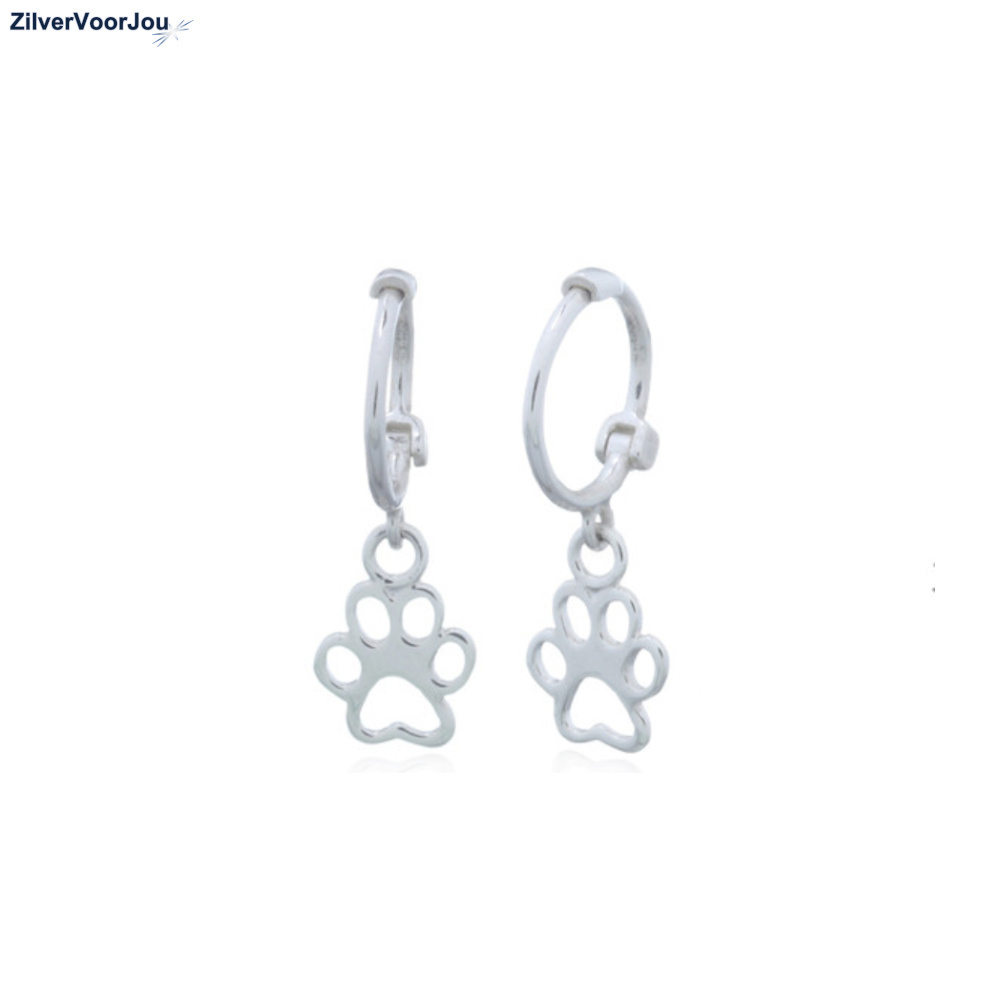 Erg leuke echt zilveren kleine huggie oorringen met een pootafdruk van een hond of kat bedeltje.