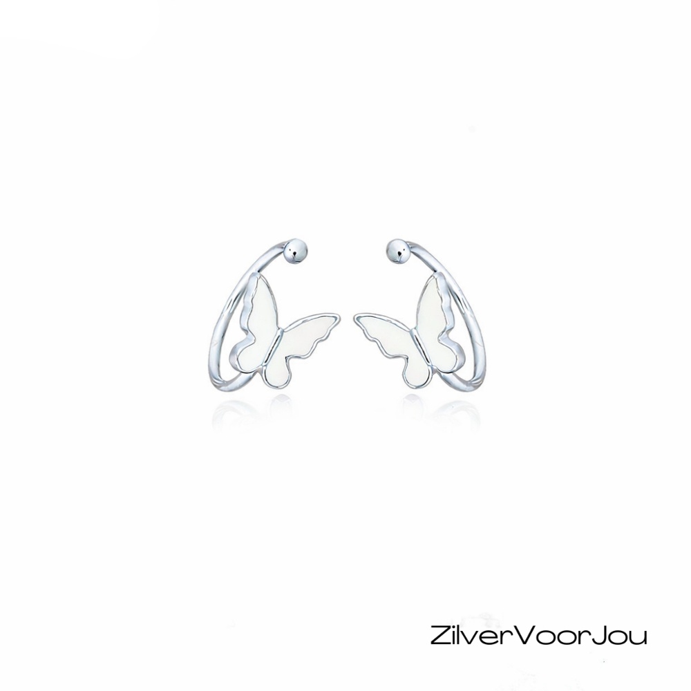 Zó lief deze kleine vlinder earcuffs. Schattige vlindertjes die je in je oorschelp kunt klemmen. De vlindertjes zijn gemaakt van 925 zilver en de kleine vleugeltjes zijn ingelegd met witte enamel.