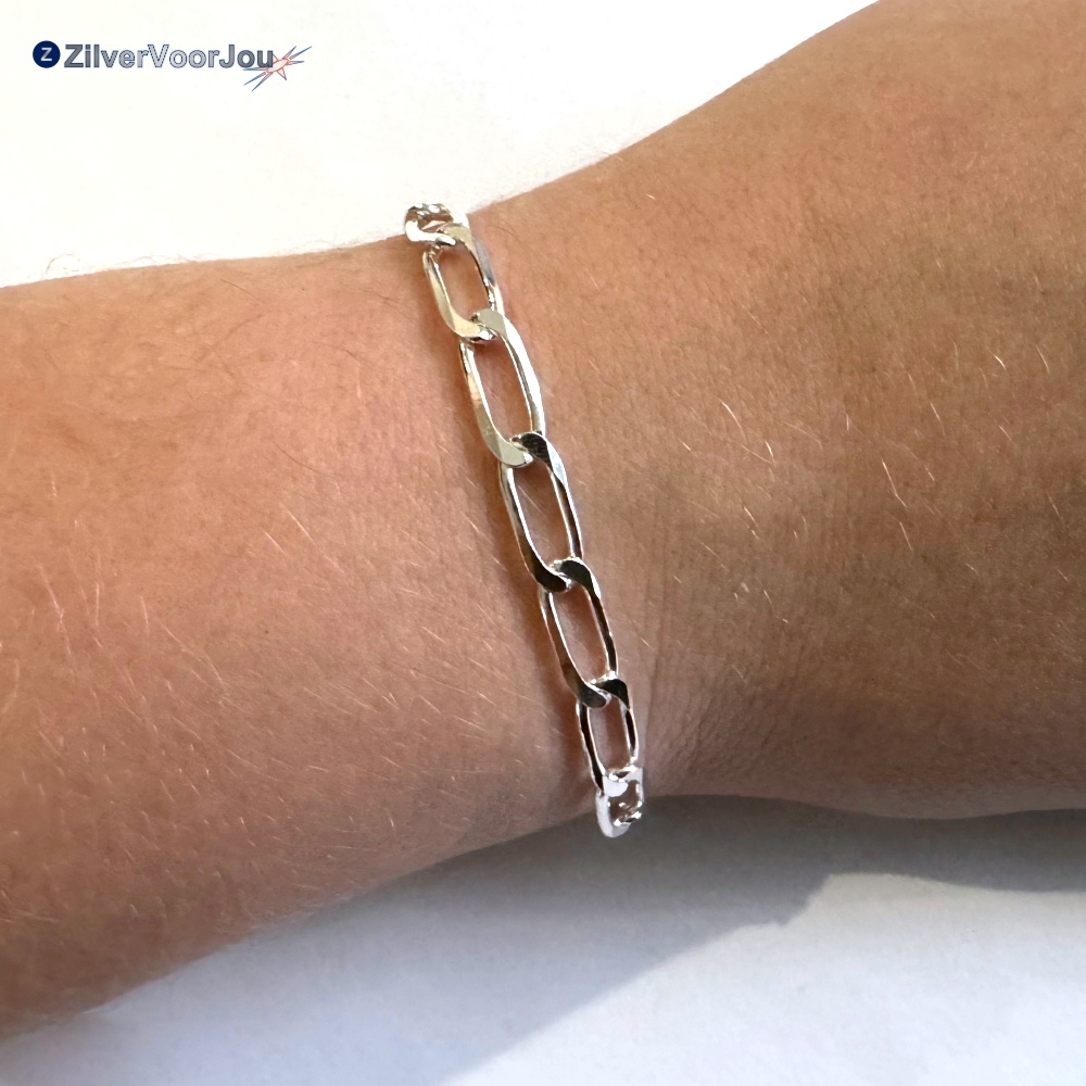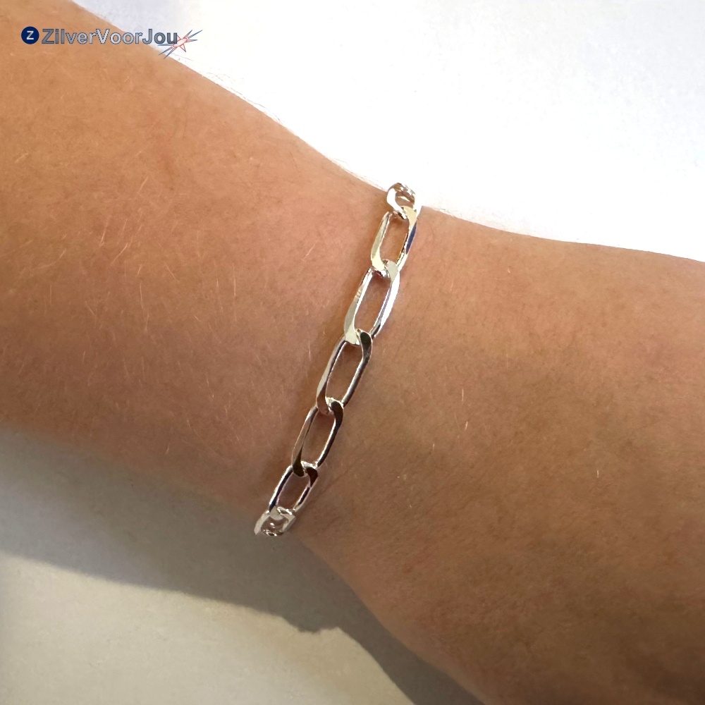 Prachtige lange gourmet schakel armband met een lengte van 19.5 cm. De schakel is 5.8 mm breed. Mooie brede armband. Prachtig om zo te dragen of in combinatie met meerdere armbanden of een horloge.