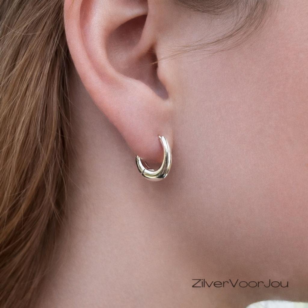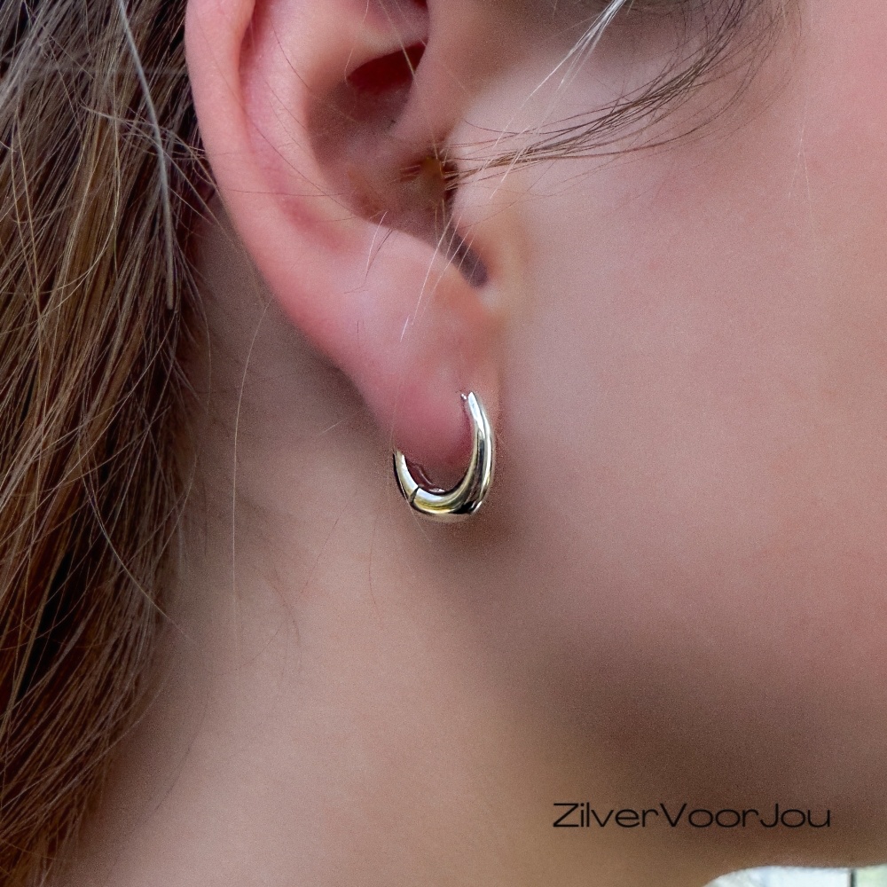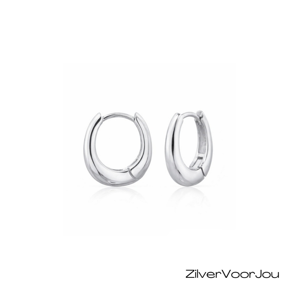 Deze licht ovale huggie oorringen van 925 zilver hebben een moderne, hoekige vorm die net even anders is dan een klassieke ronde oorring.