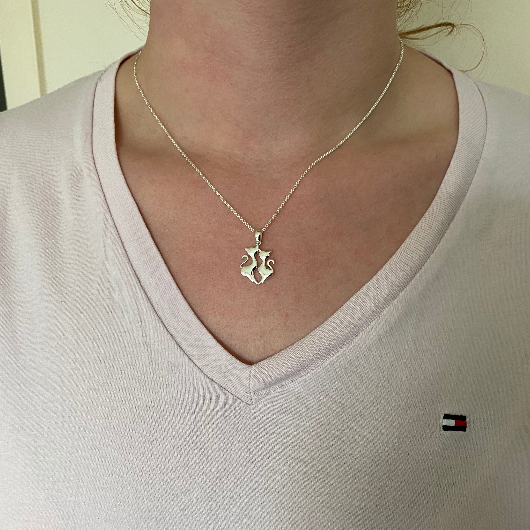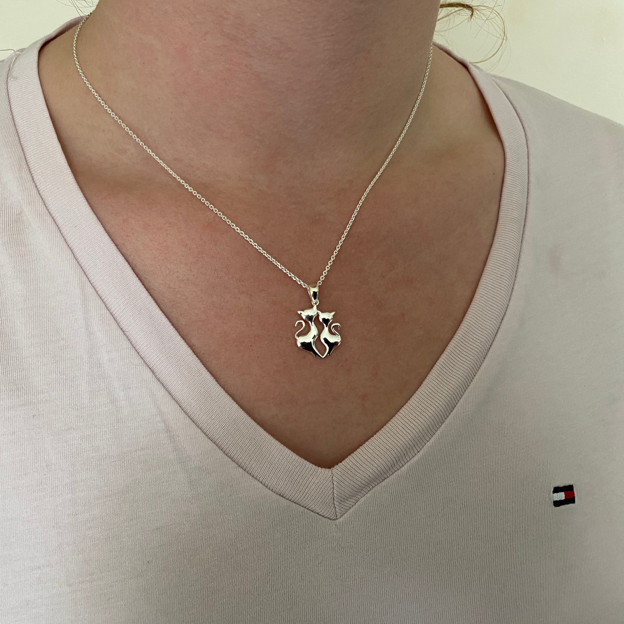 Schitterend tafereeltje van 2 katten of poezen. Een echt zilveren ketting en hanger, een must voor kattenliefhebbers.
