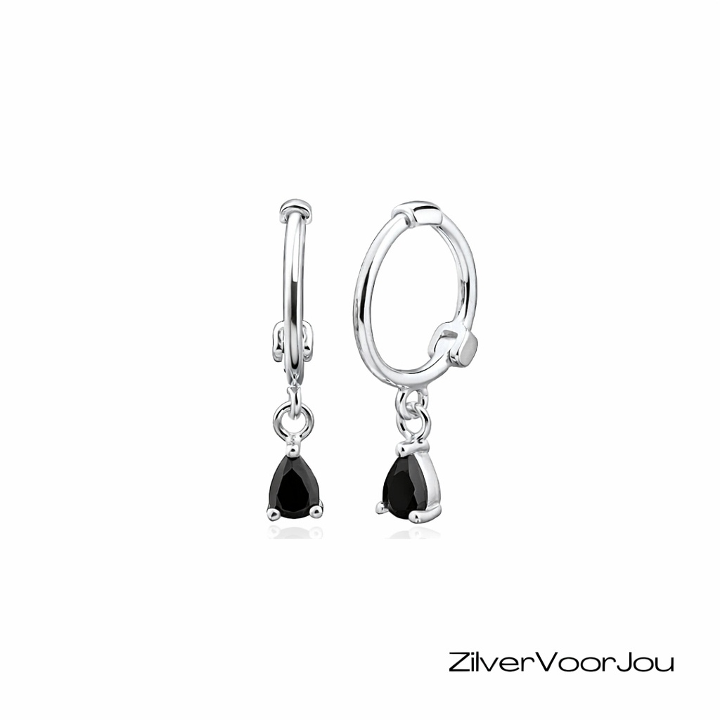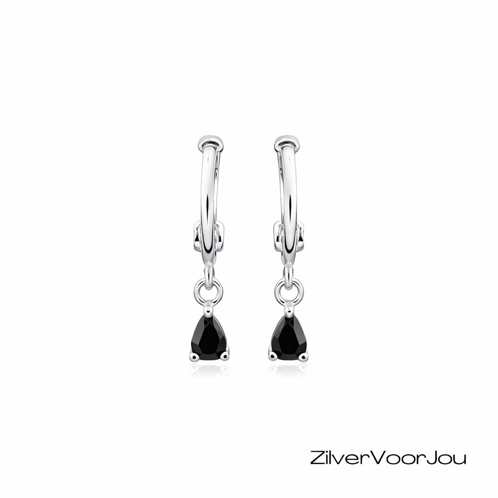 Teardrop mini huggie hoops. Kleine echt zilveren oorringen met een zwarte zirkoon druppel hanger. Geschikt voor kinderen of voor een tweede of derde oorgaatje. De totale lengte van de oorbel is 17 mm.