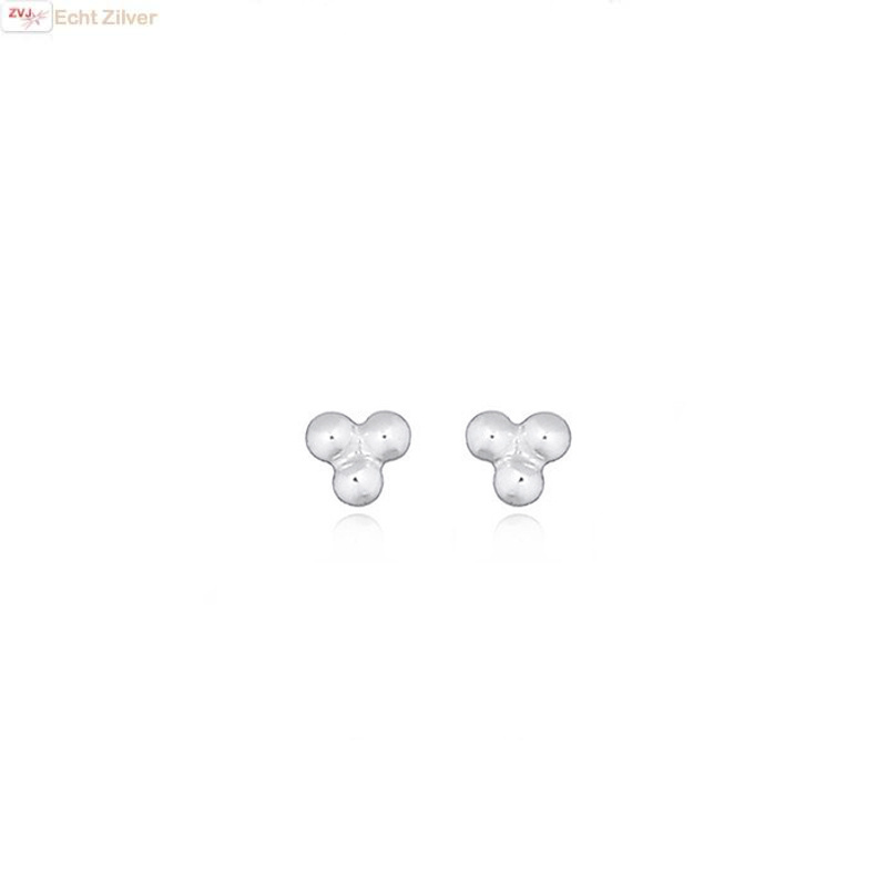 Superkleine oorstekers met 3 kleine balletjes in een driehoek. De oorstekers zijn 3 x 3 mm klein!