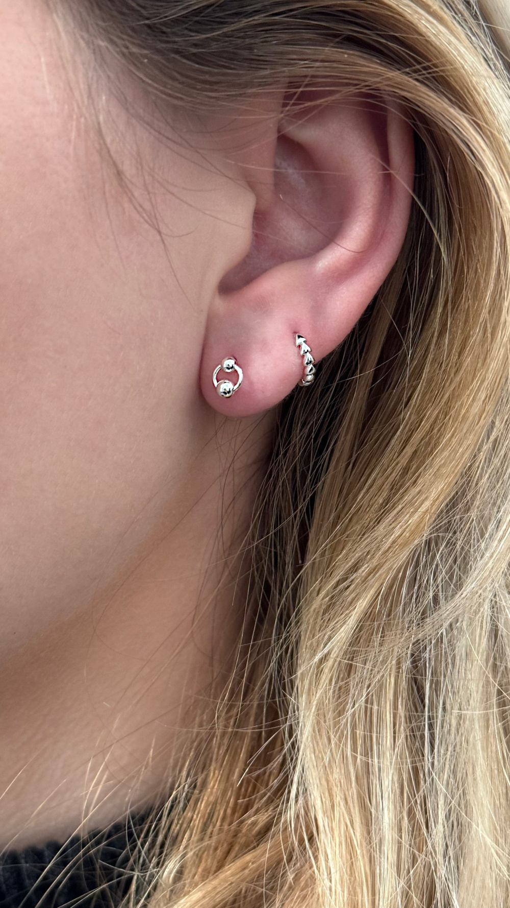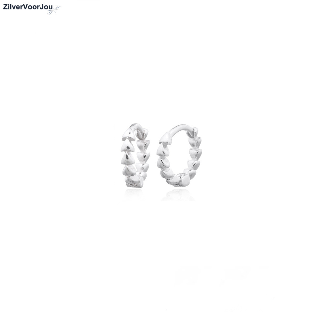 Mooie en erg leuke mini huggie oorringen. De oorringen hebben de vorm van gestapelde driehoekjes. Super oorringen om te combineren met meerdere oorringen in een oor. De oorringen of huggie hoops zijn gemaakt van 925 zilver.