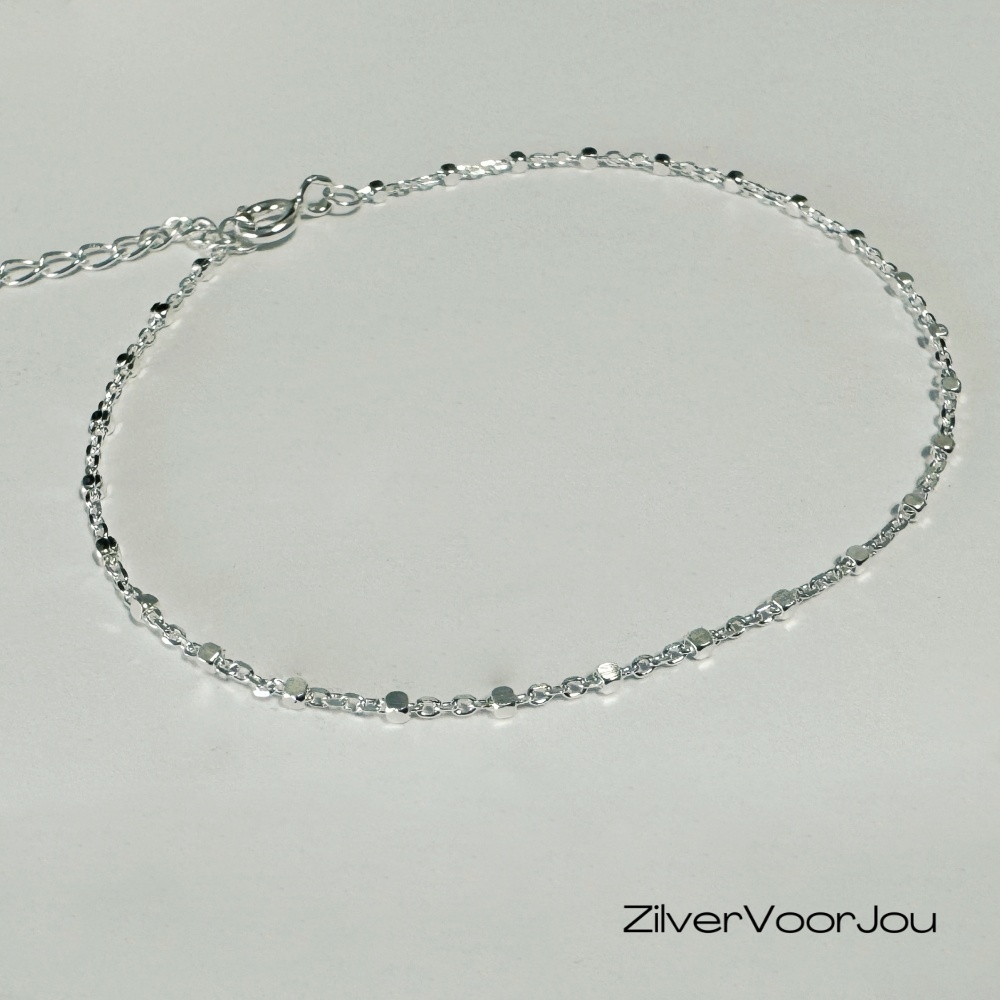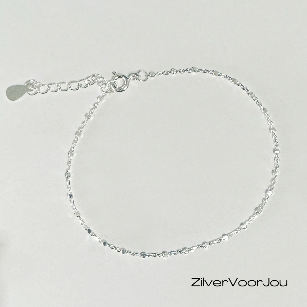 Mooi fijntjes maar zeer elegant armbandje. Een armbandje voor een minimalistisch look maar wel met een mooie bling. Het armbandje is 1.3 mm breed met kleine blinkende blokjes. Gemaakt van 925 zilver met een lengte van 16 cm met 4 cm verlenging.