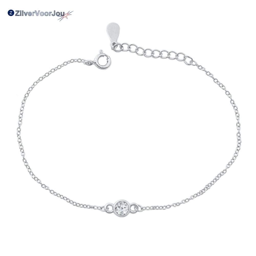 Mooi fijn armbandje met een kleine ronde witte zirkonia in bezel zetting. Het armbandje heeft een lengte van 16 cm met 3 cm verlenging. Gemaakt van 925 zilver en gerhodineerd.