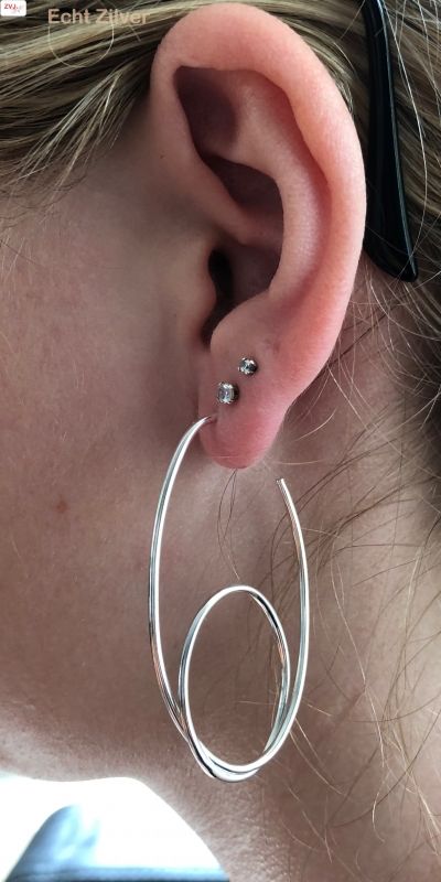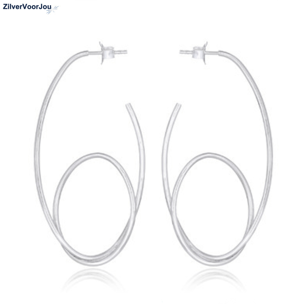 Alles over dit productHippe steek creolen, oorringen met een draai.De creolen zijn 28 mm breed en 52 mm lang. Gemaakt van 925 zilver.