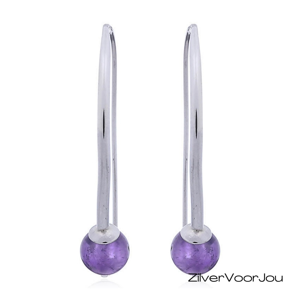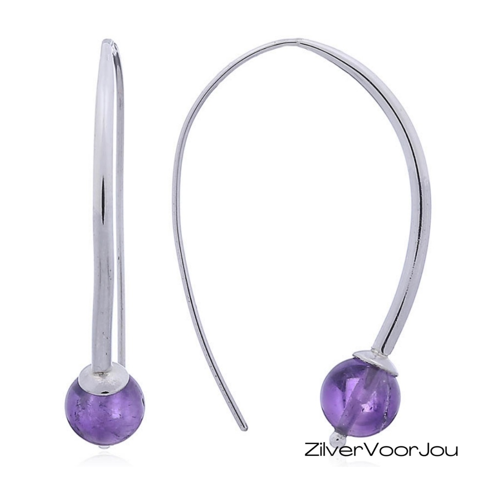 Deze luxe 925 zilveren oorbellen hebben een prachtige amethist kraal van 8 mm. De gebogen zilveren draad geeft het ontwerp een moderne en luxe uitstraling. Door de gladde afwerking dragen de oorbellen licht en comfortabel, ideaal voor dagelijks gebruik én voor bijzondere gelegenheden.