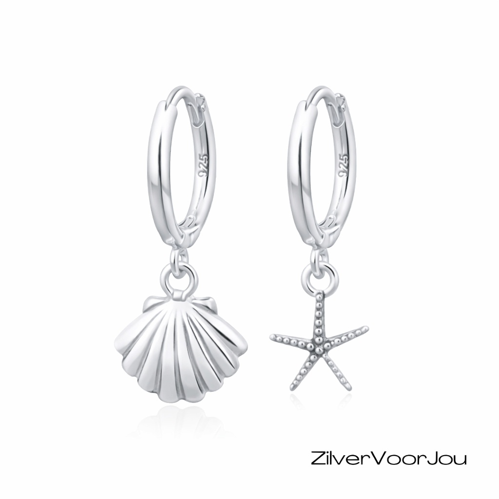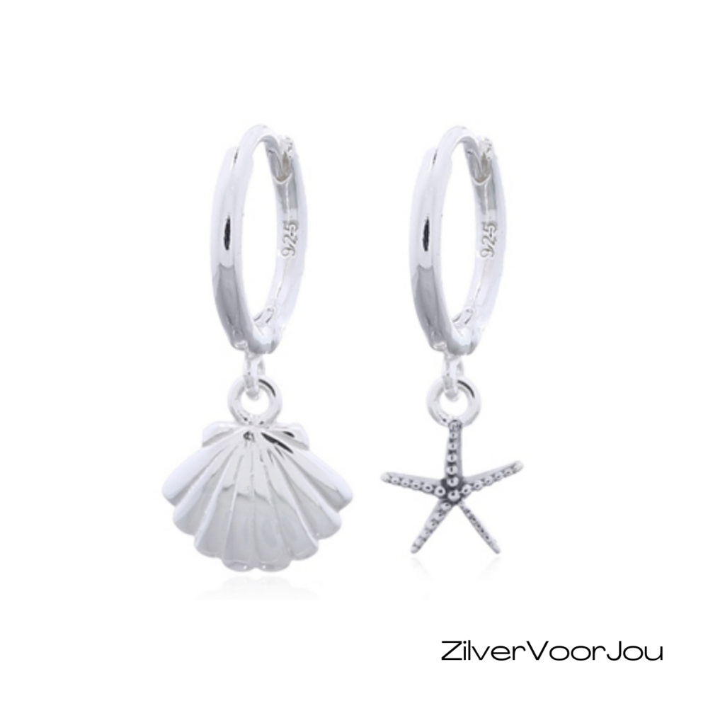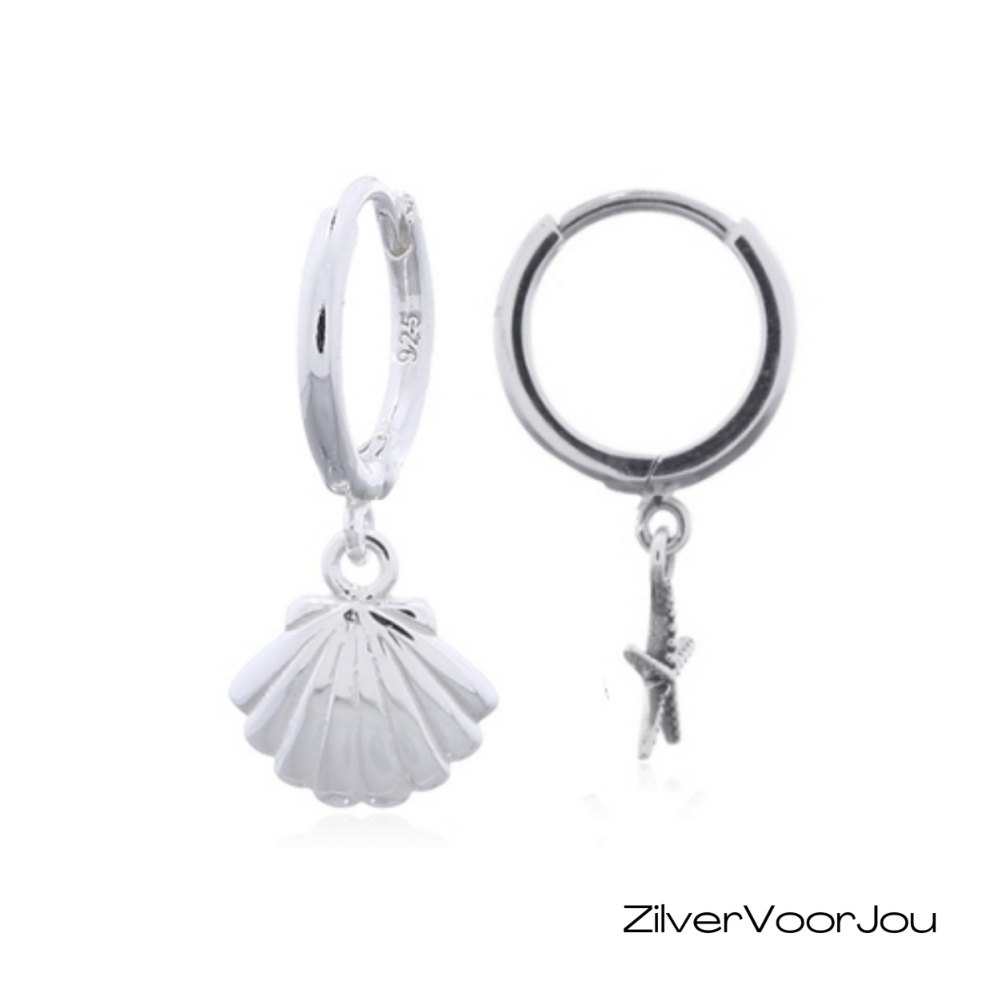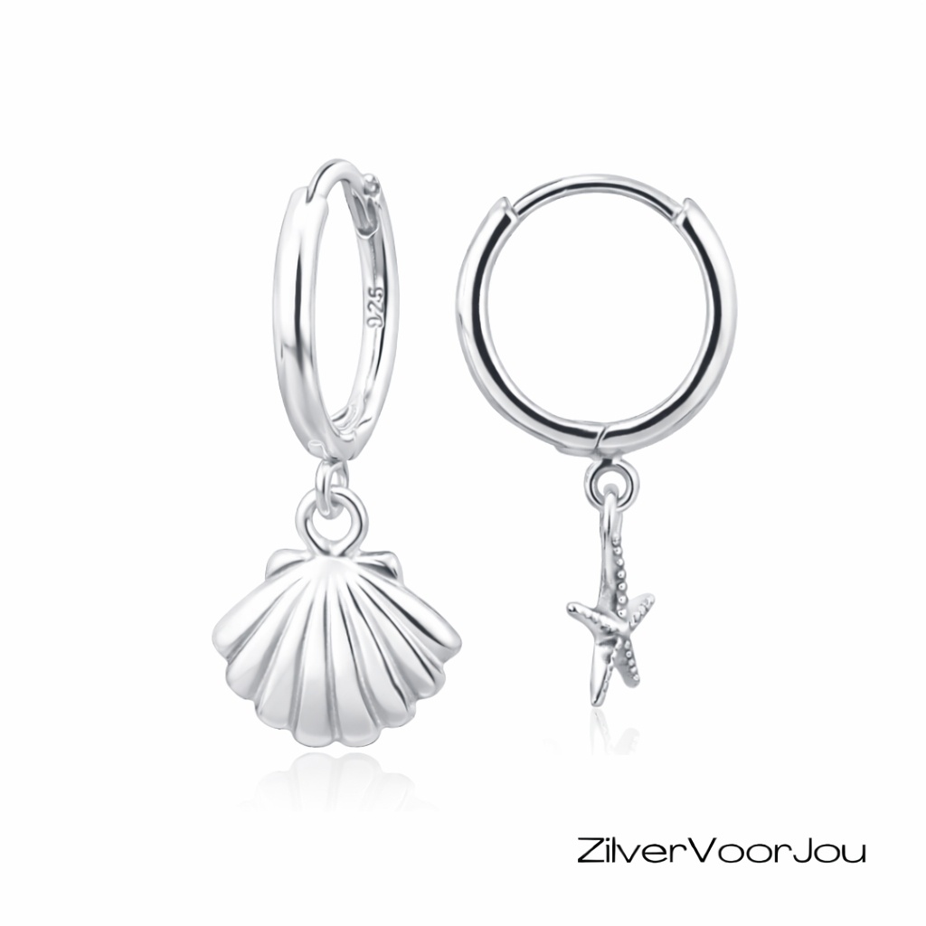 Deze 925 zilveren huggie oorringen of klapcreolen hebben een speelse zeester en schelp bedel. De combinatie van beide Sea of life symbolen geeft de oorbellen een zomerse uitstraling die perfect past bij strandliefhebbers en iedereen die houdt van een frisse, oceaan geïnspireerde look. De oorbellen zijn licht van gewicht, comfortabel om te dragen en prachtig hoogglans afgewerkt.