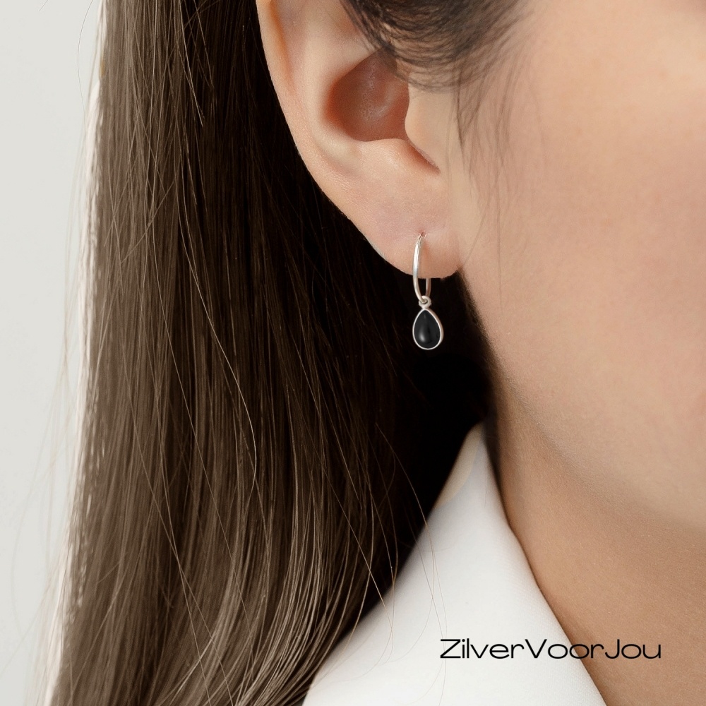 Deze elegante kleine 925 zilveren oorringen zijn voorzien van zwart agaat in een druppelvormige zetting. Het minimalistische design met een frame-setting zorgt voor een moderne en tijdloze uitstraling. Dankzij de oorringen zijn ze licht om te dragen en geschikt voor dagelijks.