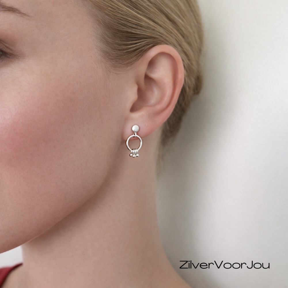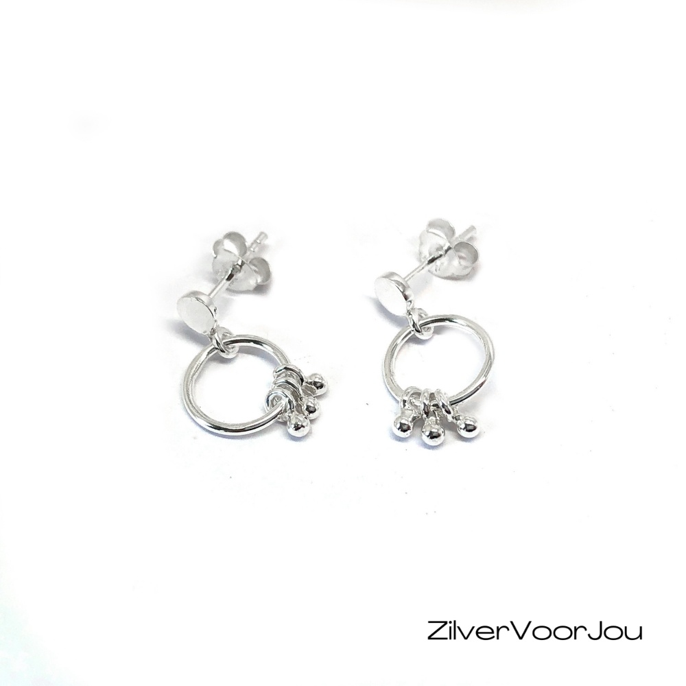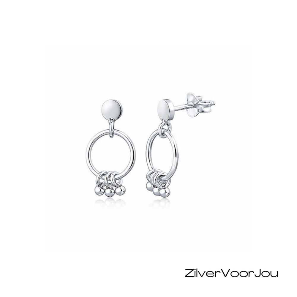Super leuke set oorbellen. Een cirkel oorsteker met daaraan een ringetje met 3 kleine bal hangertjes. Moderne oorstekers een must have voor de trendy girls.