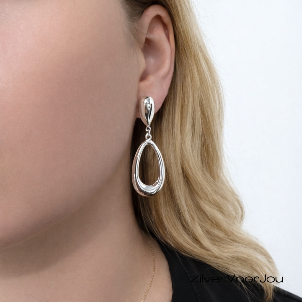 Zó leuk en zo tijdloos. Deze mooi lange open ovale oorhangers! Deze oorhangers passen echt overal bij. Draag ze op je werk maar draag ze ook naar een feestje of een gala, het kan allemaal.