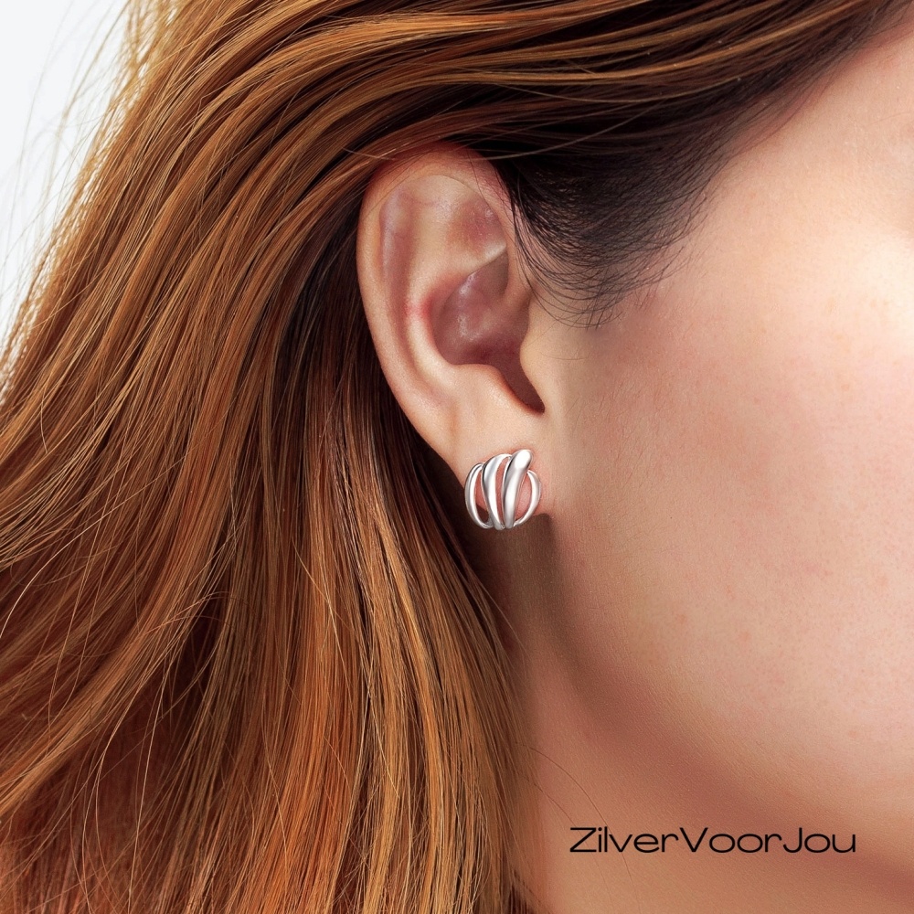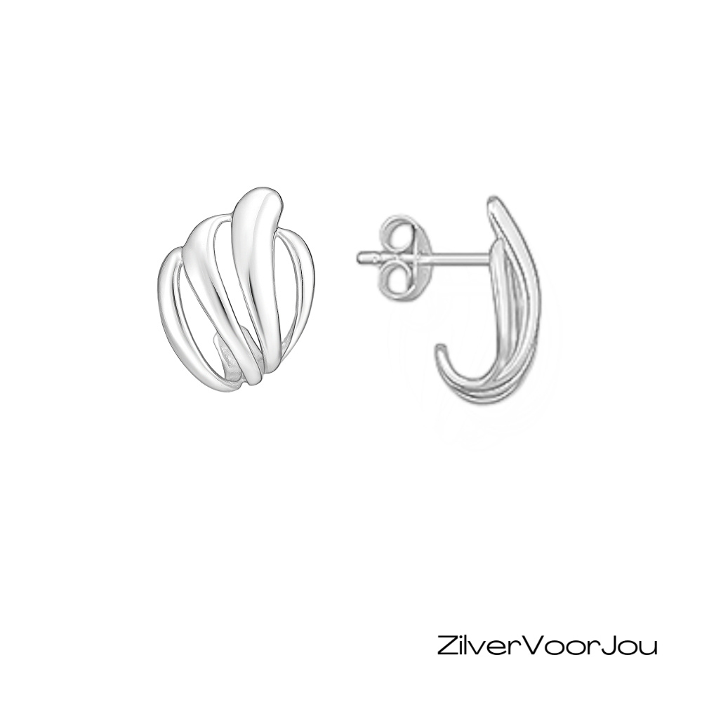 Deze prachtige 925 zilveren oorstekers hebben een speels en modern ontwerp met meerdere vloeiende lijnen die samen een elegant geheel vormen. Het glanzende oppervlak en de organische vormen maken dit sieraad perfect voor dagelijks gebruik én bijzondere gelegenheden. De onderkant van de oorbel krult prachtig om je oorlel.
